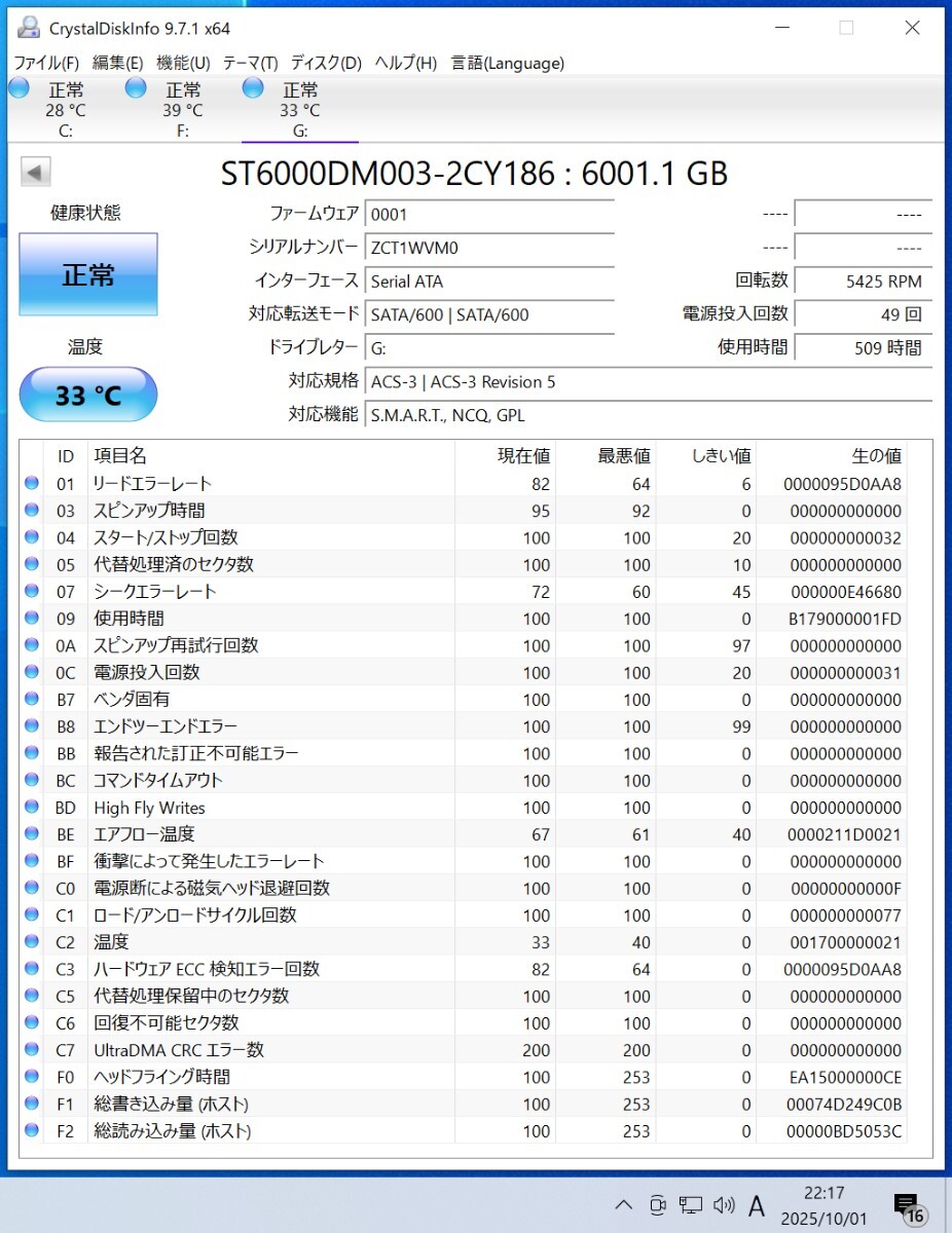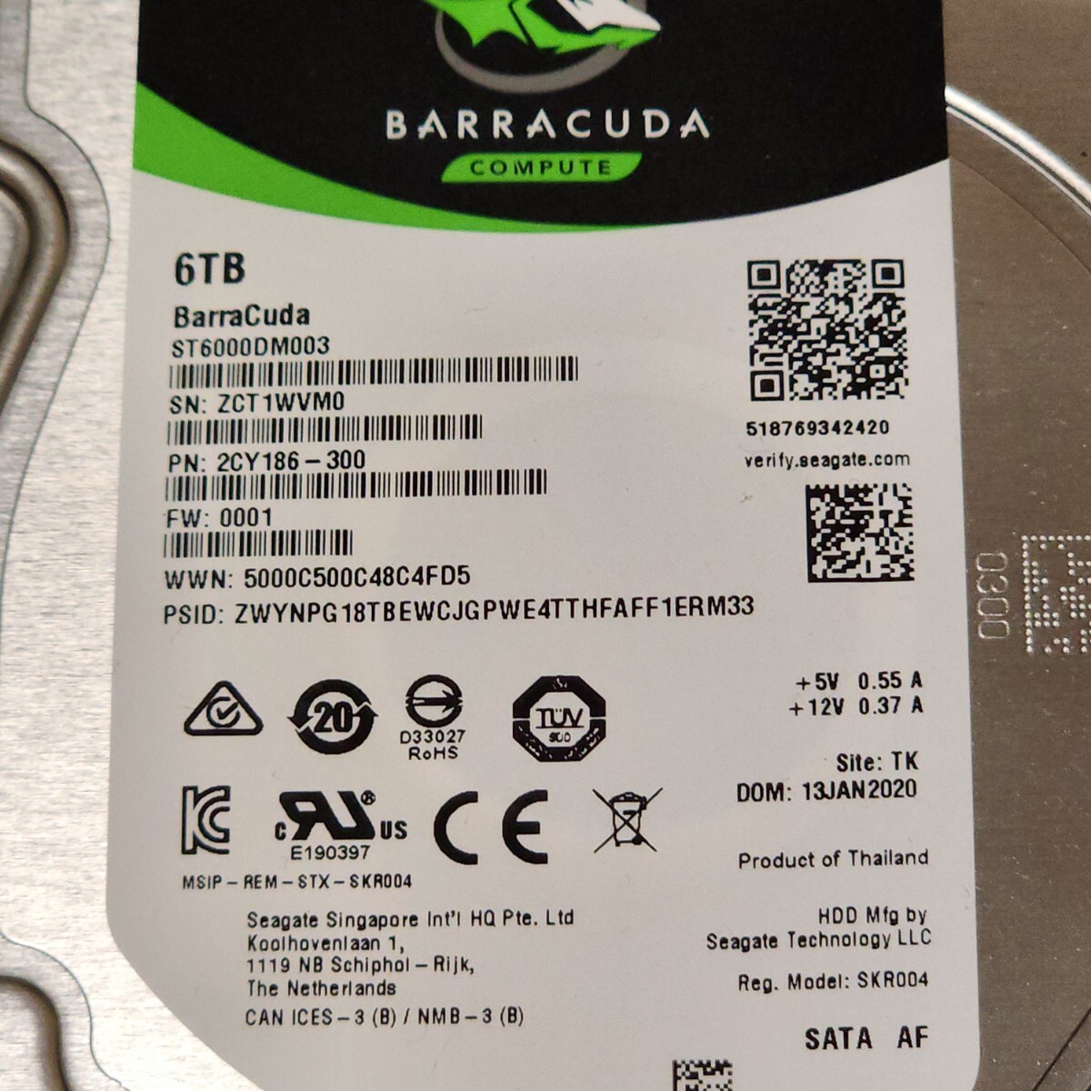SEAGATE BARRACUDA ST6000DM003-2CY186 6TB 3.5インチ内蔵HDDの出品です。