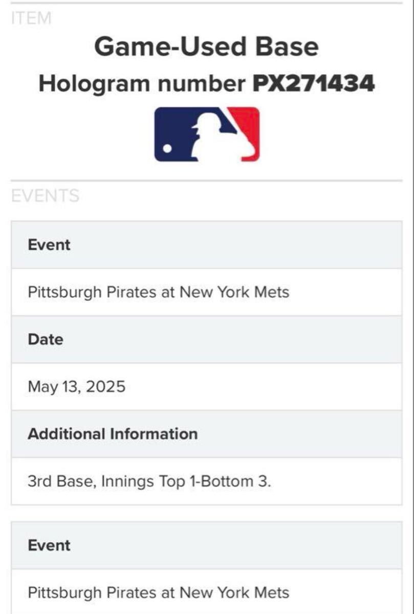 今年(2025年)5月23日(現地時間)の大谷翔平選手が出場したドジャース対メッツ戦で使用された実使用ベースです。