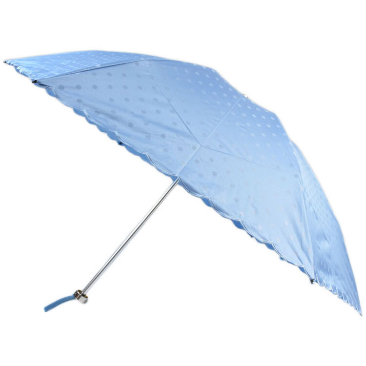 商品説明 | スカラップ刺繍 ドット デザイン晴雨兼用 折りたたみ日傘。 スリムサイズなので持ち運びに便利です。 遮光率99.99%以上、UV遮蔽率99%以上、遮熱効果。 晴雨兼用パラソル。 指にやさしいはじきカバー付。 東レ高性能カーボンファイバー「トレカR」使用。 ※この製品は、生地に箔プリントを施しております。 ◆プリント部分を強く擦ったり、衝撃が加わった場合や、ご使用状況や保管状況によりプリント部分にヒビ割れや剥離がおこる場合がございます。 又、プリントの厚さによるシワ等の個体差が生じることがございますのでご了承くださいませ。 色:ライトブルー |