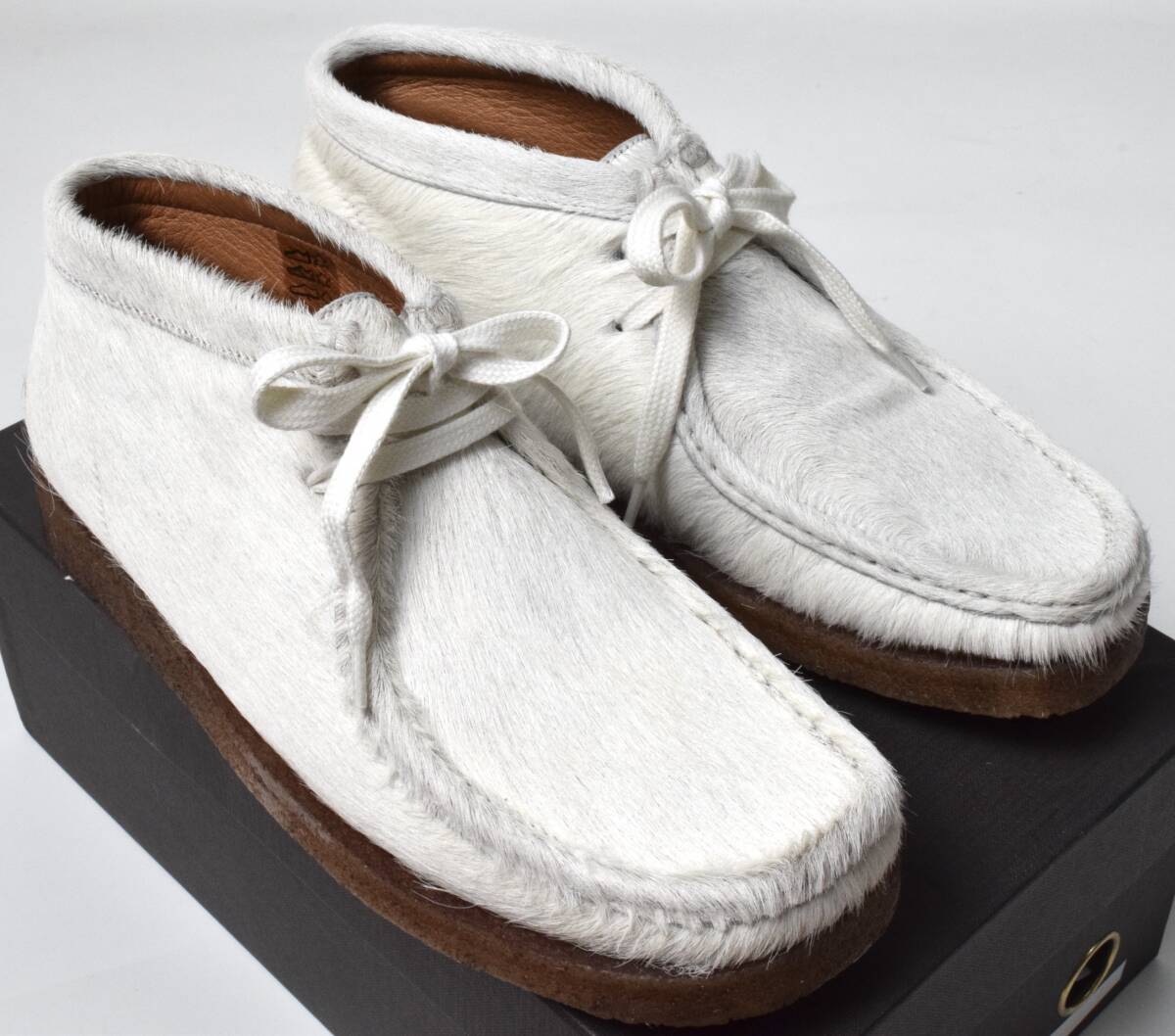 ハラコレザーを使用したワラビーシューズ、クレープソール仕様の一足になります。