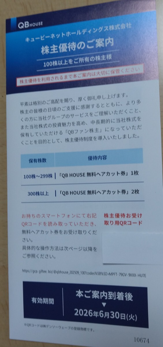 QB ハウス 無料ヘアカット券1枚です。スマホでQRコードを読み取って使用します。