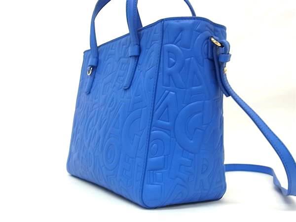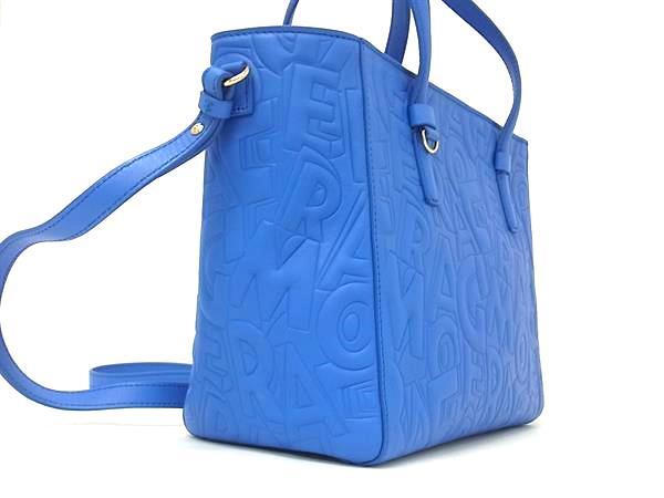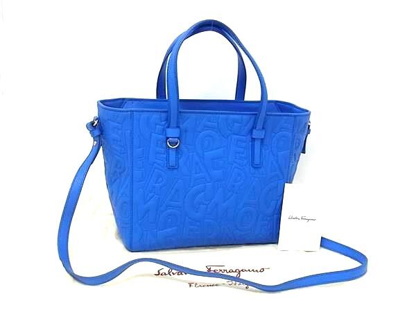 ■新品同様■Salvatore Ferragamo フェラガモ ボニー ガンチーニ レザー 2WAY クロスボディ ハンドバッグ ショルダー ブルー系 FT0517