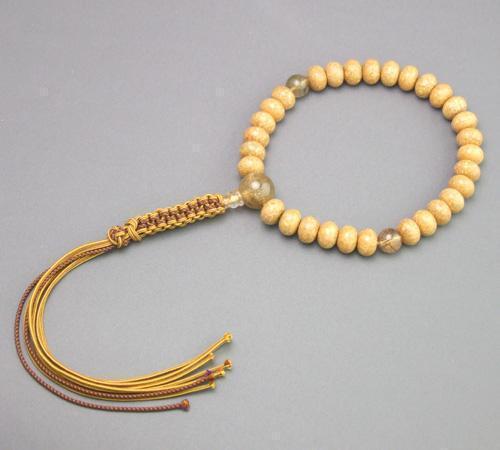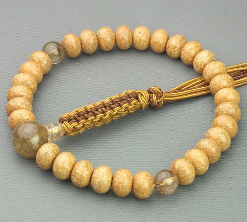 天竺菩提樹尺六みかん珠 ルチルクォーツ仕立 正絹紐房
