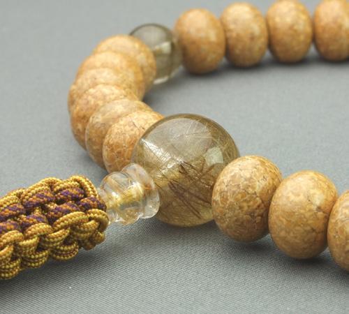 最近超人気のルチルの大玉による道具を使用。水晶部分に曇りや傷もなく大変貴重品。念珠の材料に出来るものも今ではほとんどありません。