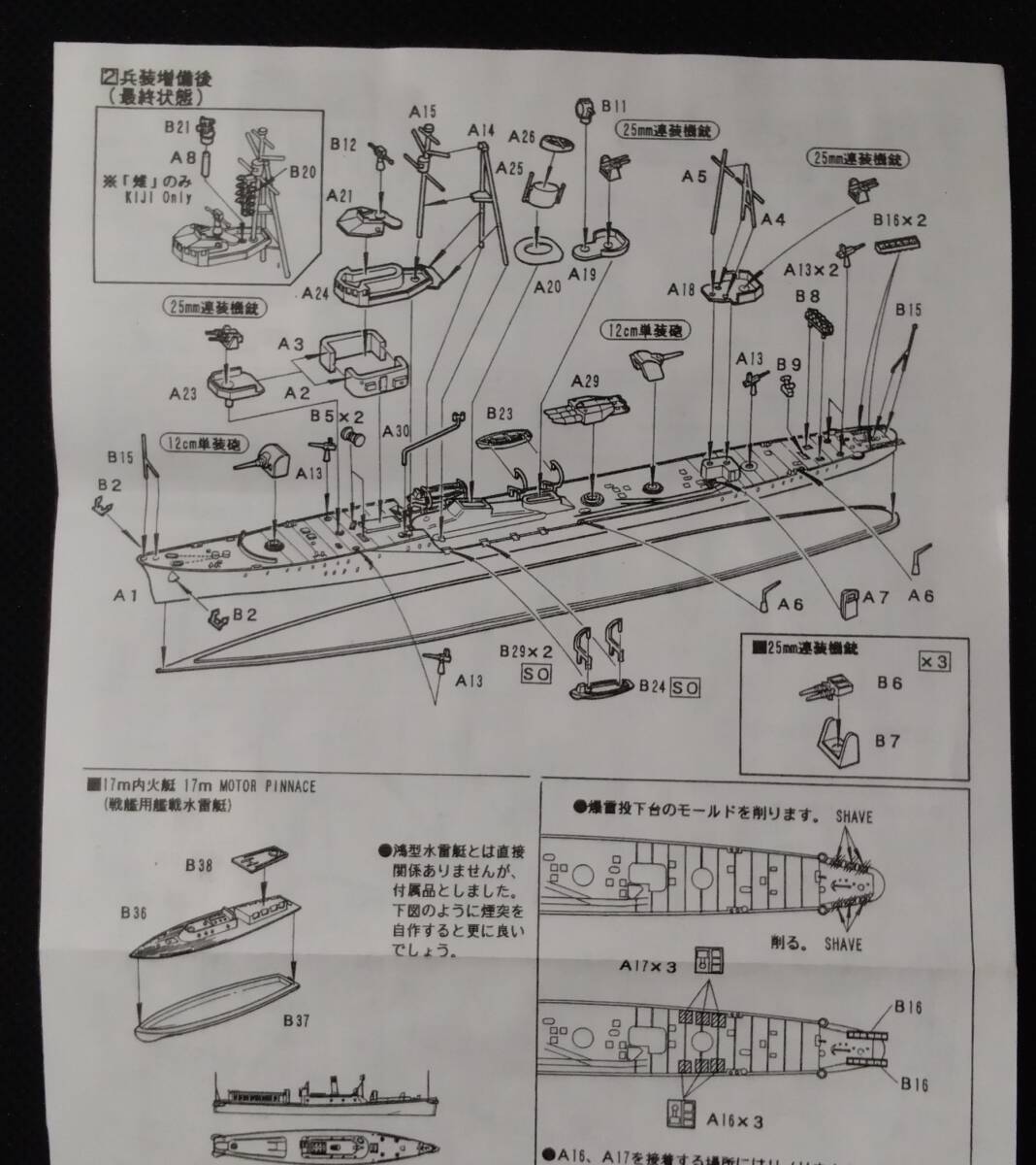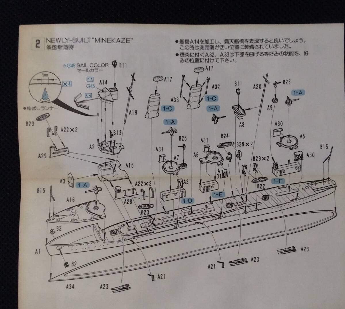 ●組立説明書に少しシワがあり、特に峯風にヤケが目立ちます。(画像5.6.7枚目)