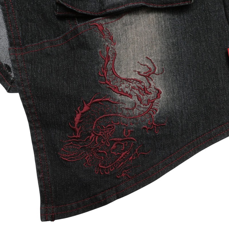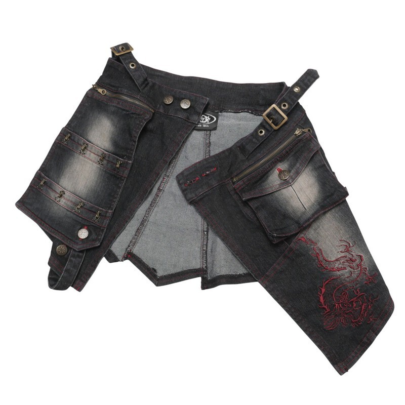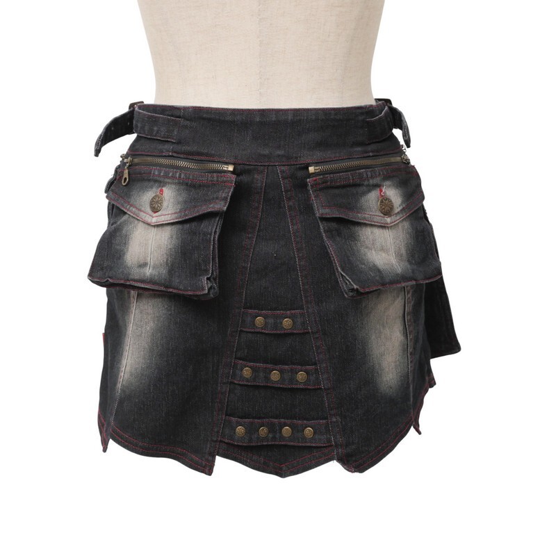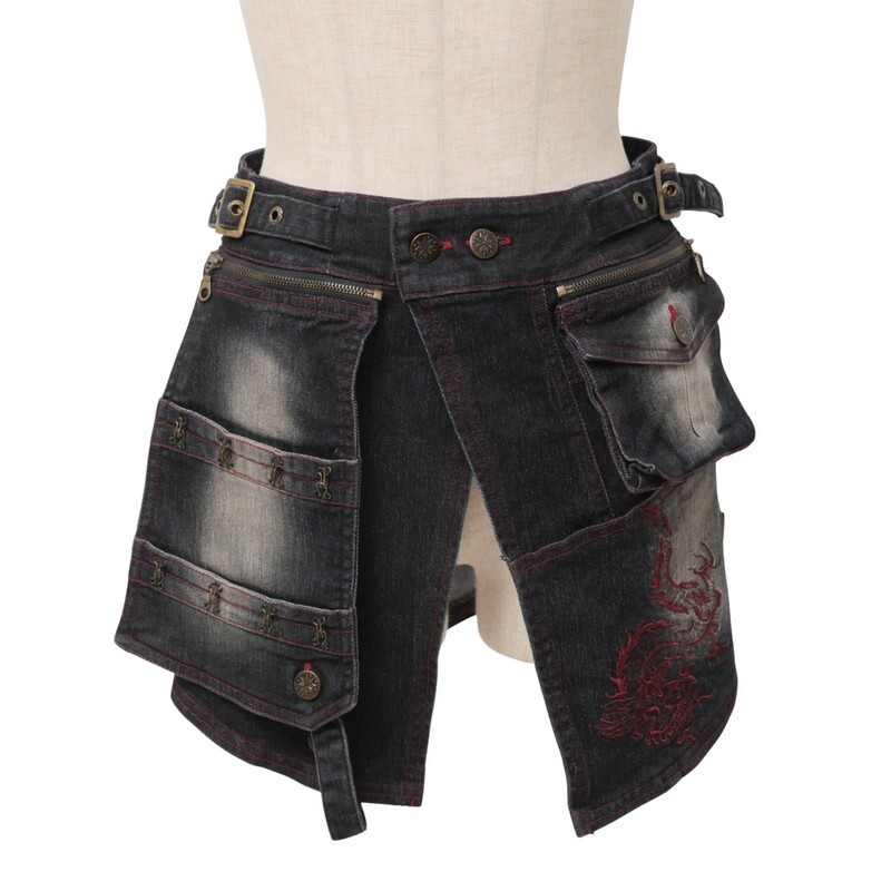 TJ4748●Ozz On hikozoh オッズオン*デニム ラップスカート*ミニスカート 刺繍*ステッチ*ホック装飾*ブラック系 | |||