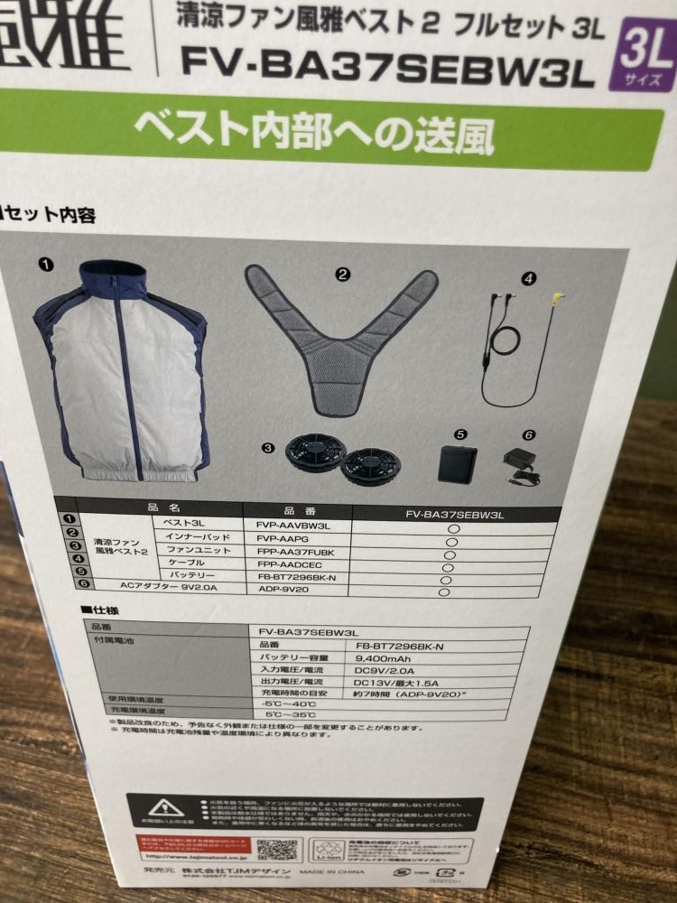 タジマ Tajima ■商品名 清涼ファン風雅ベスト2 ■型番 FV-BA37SEBW3L |