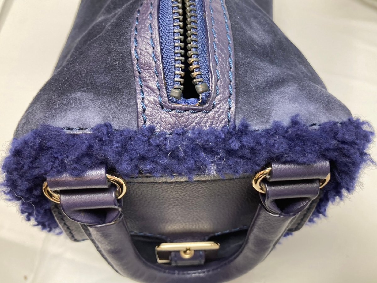 ◆KateSpade ケイトスペード ハンドバッグ 青系 スエード×ボア 保管袋付き 中古◆13958