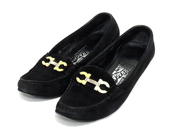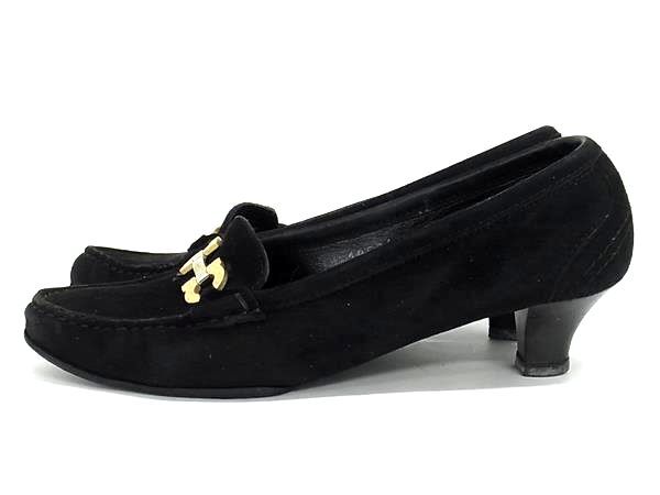Salvatore Ferragamo フェラガモ SN18594 ダブルガンチーニ スエード ヒール パンプス 表記サイズ4 1/2(約22cm) 靴 ブラック系 DI6913