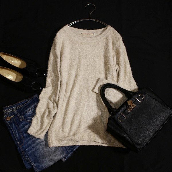 ほんのりラメの綺麗めショートシャギーニットセーターです。