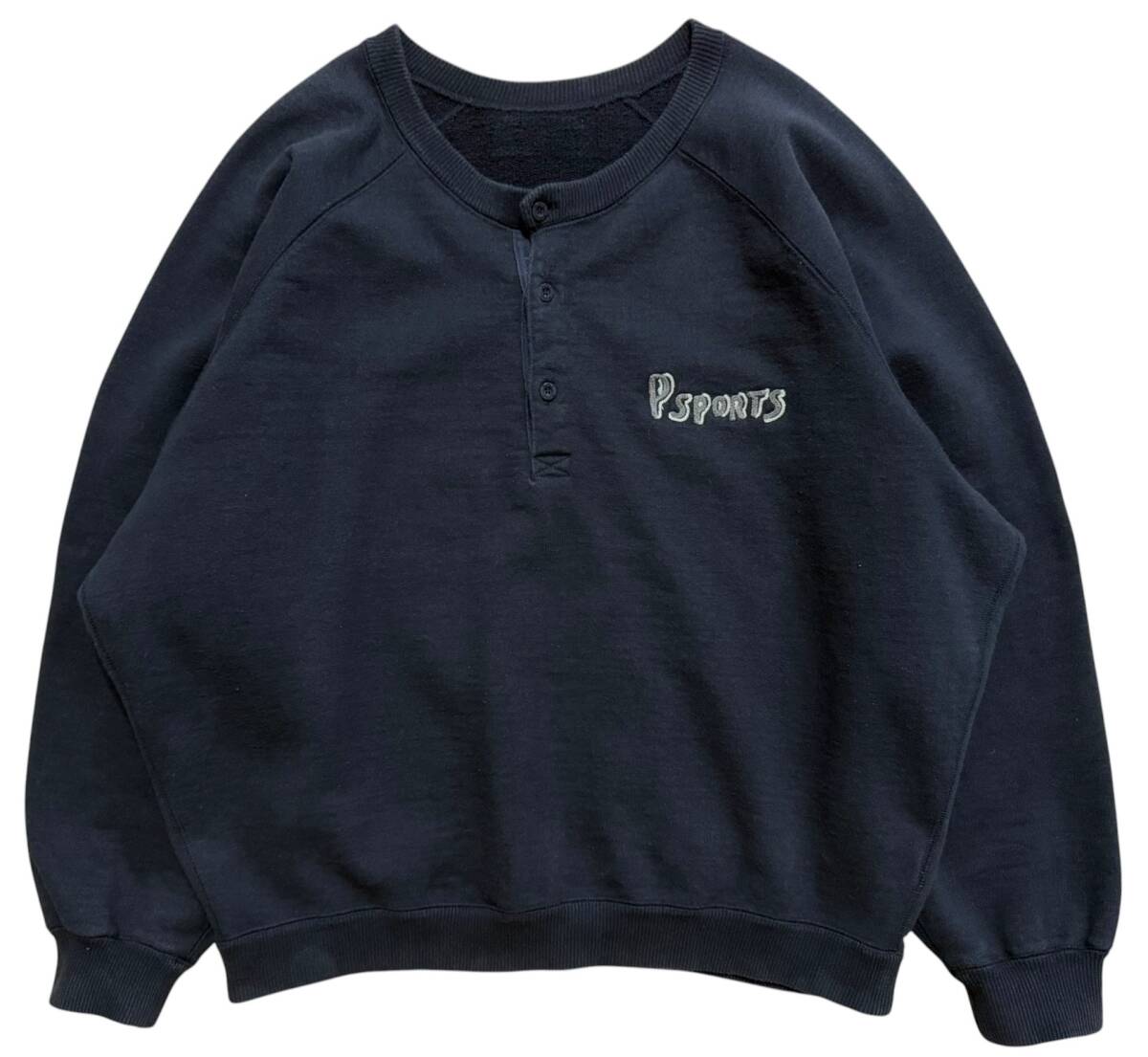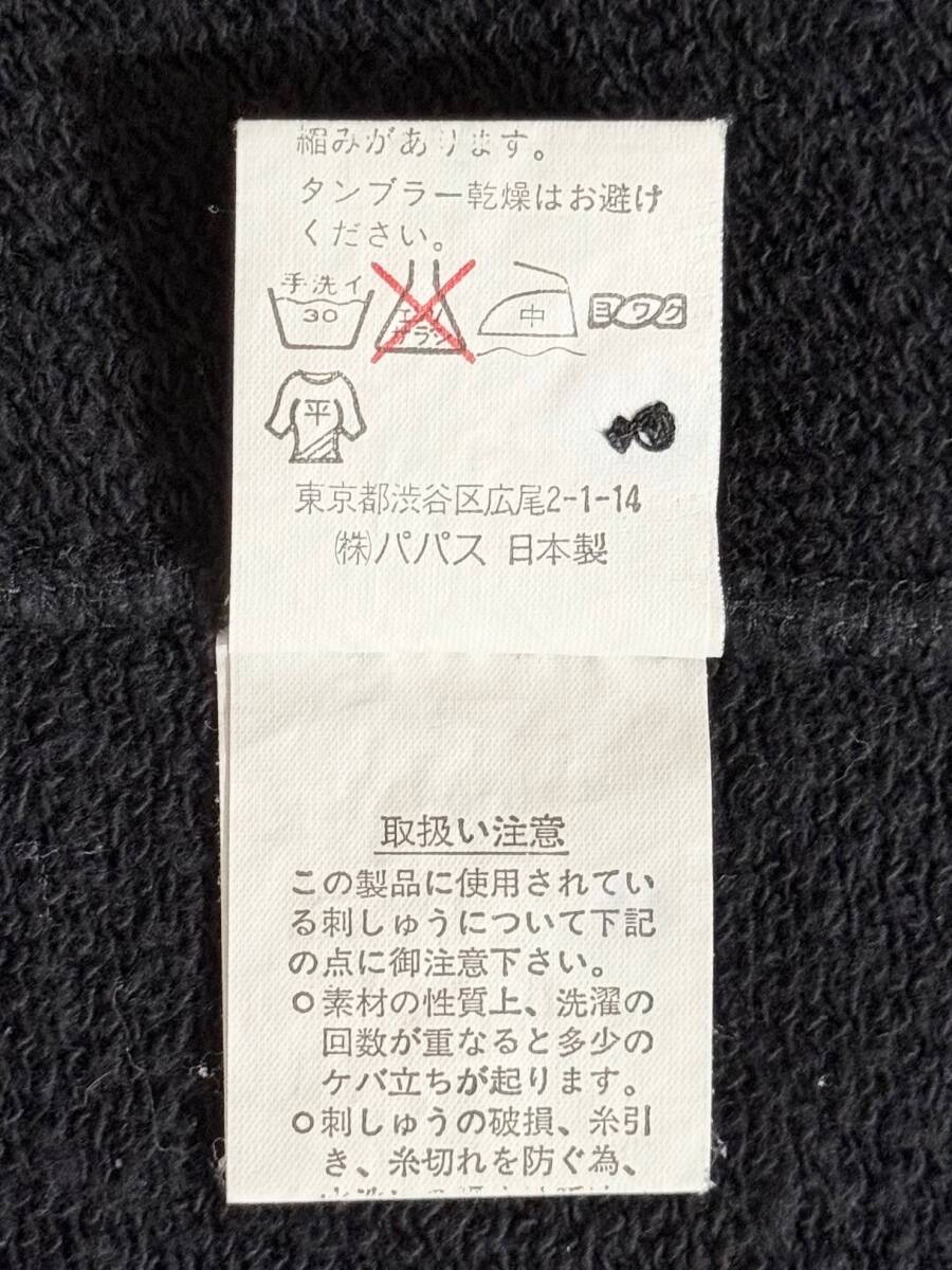 Papas パパス チェーンステッチ ロゴ刺繍 ビッグシルエット オーバーサイズ プルオーバー スウェットシャツ トレーナー L ブラック