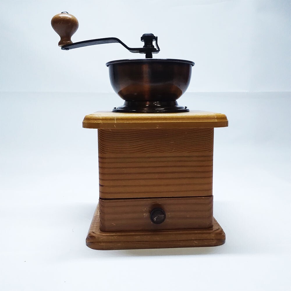 【中古】オルゴール付き コーヒーミル 木製 レトロ クラシカル 手動式 インテリア 珈琲 ブラウン 手挽き SANKYO |