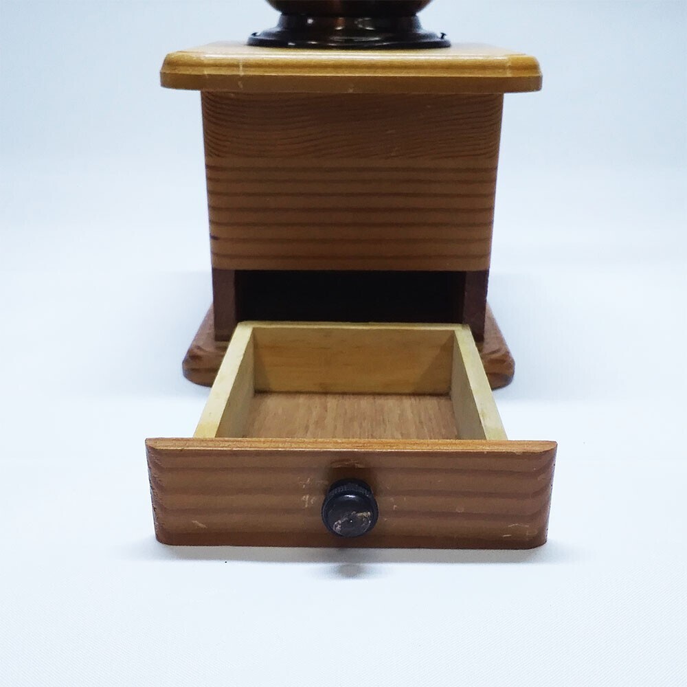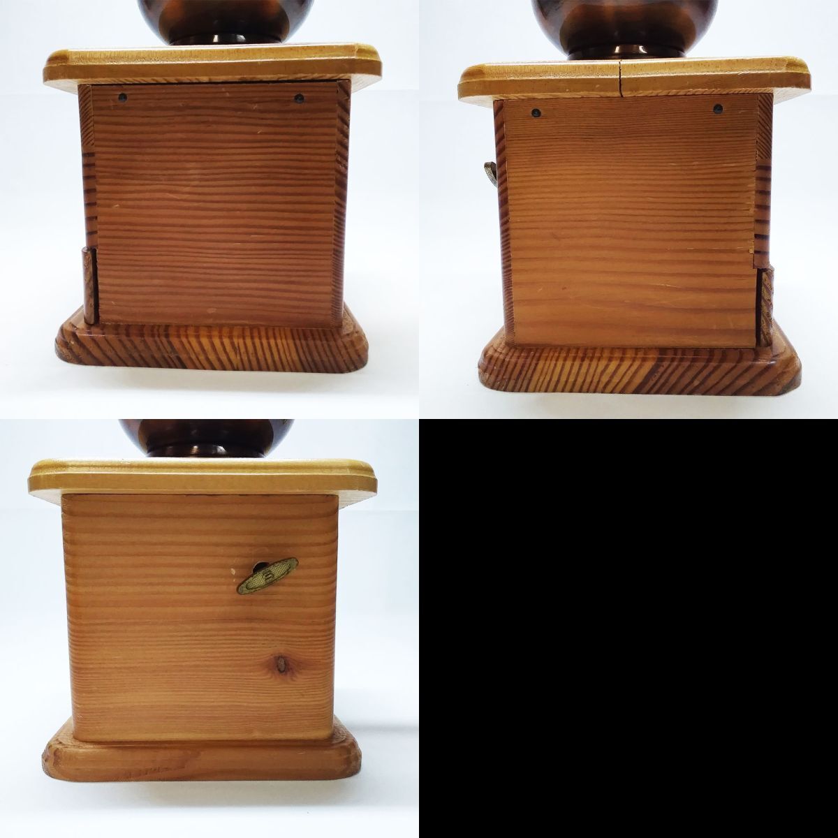 ご覧頂き有難うございます。 入札を検討されている方は、 注意事項をよく読んでから御入札をお願い致します。 【メーカー】 SANKYO 【商品内容】 オルゴール付コーヒーミルです。 引き出しを開けるとオルゴールが鳴ります。 オルゴール本体は画像をご覧ください。 【サイズ】 縦 約 12 cm ×横 約 10 cm ×高さ 約 12 cm 重量 約 900g 【商品状態】 簡易清掃済みです。 コーヒーミル全体に傷、汚れがあります。 挽いたコーヒー粉が入る引き出しの左側金具部分に錆びがあります。 錆びにつては画像7枚目の写真をご参照ください。