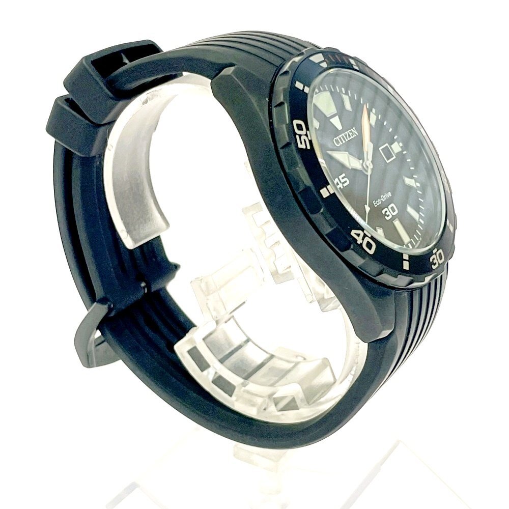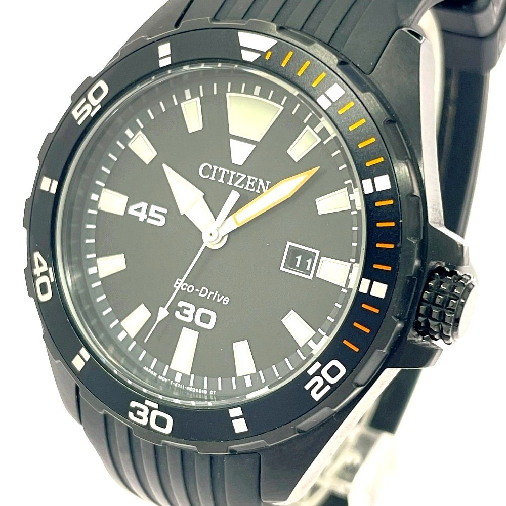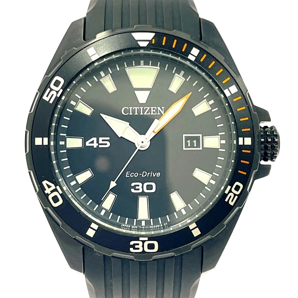 【1円スタート】CITIZEN シチズン E111-R010671 エコドライブ デイト SS ブラック系文字盤 ソーラー メンズ腕時計 488802