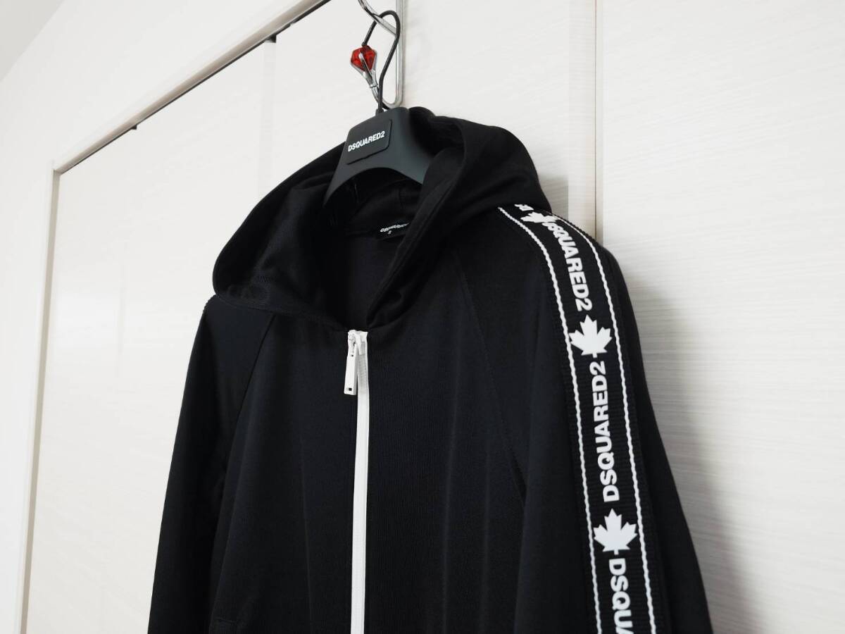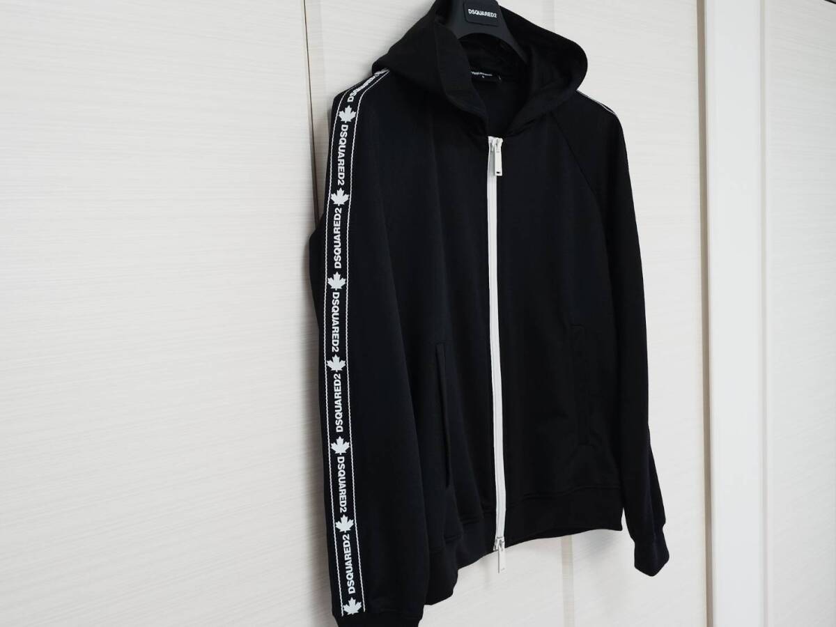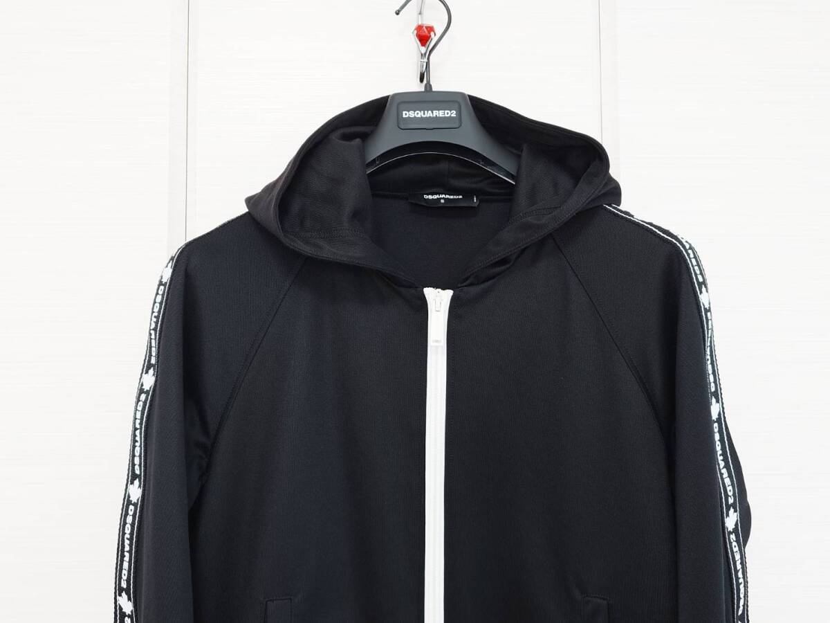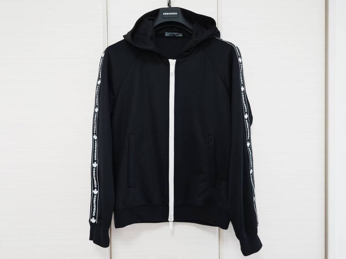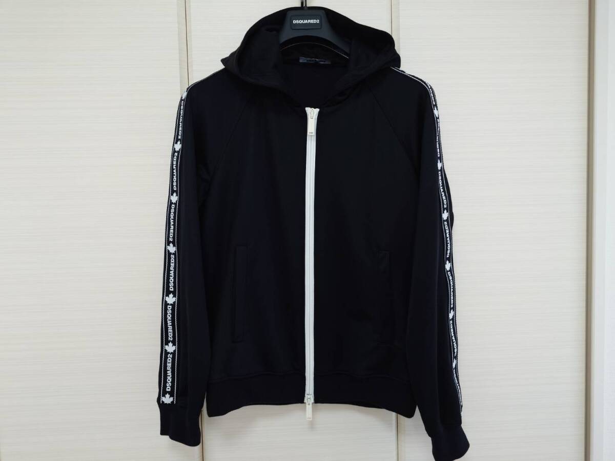 ★超美品 国内正規品 ディースクエアード アームラインロゴ フード・パーカートラックジャケット ジャージ生地 黒 サイズS/M★