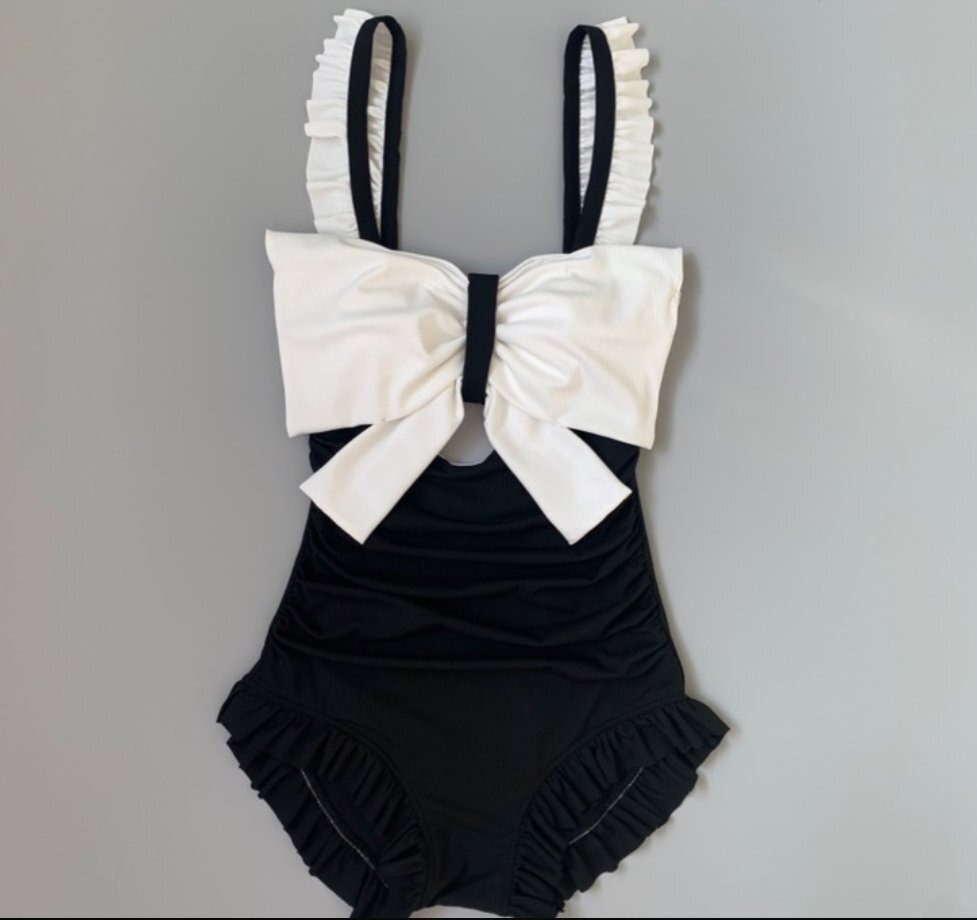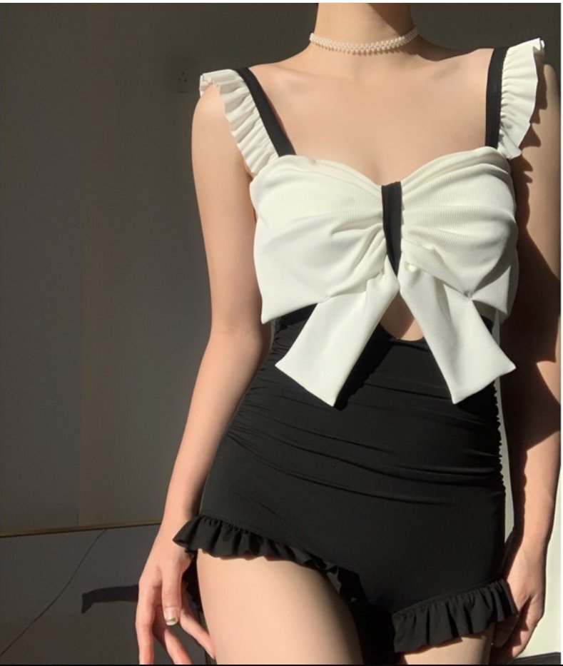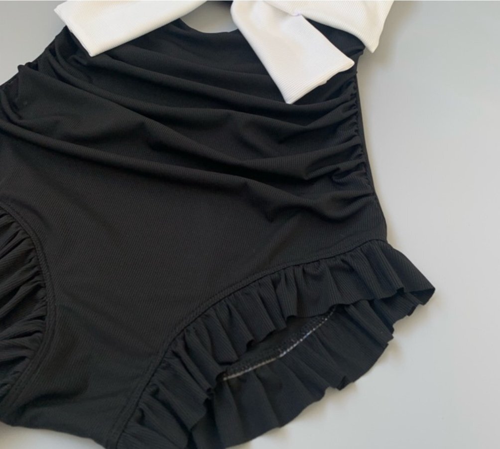 大人可愛い スクール水着 胸元リボン ワンピース水着 レディース フリル レオタード 可愛い水着 海 コスプレ 温泉 プール 黒