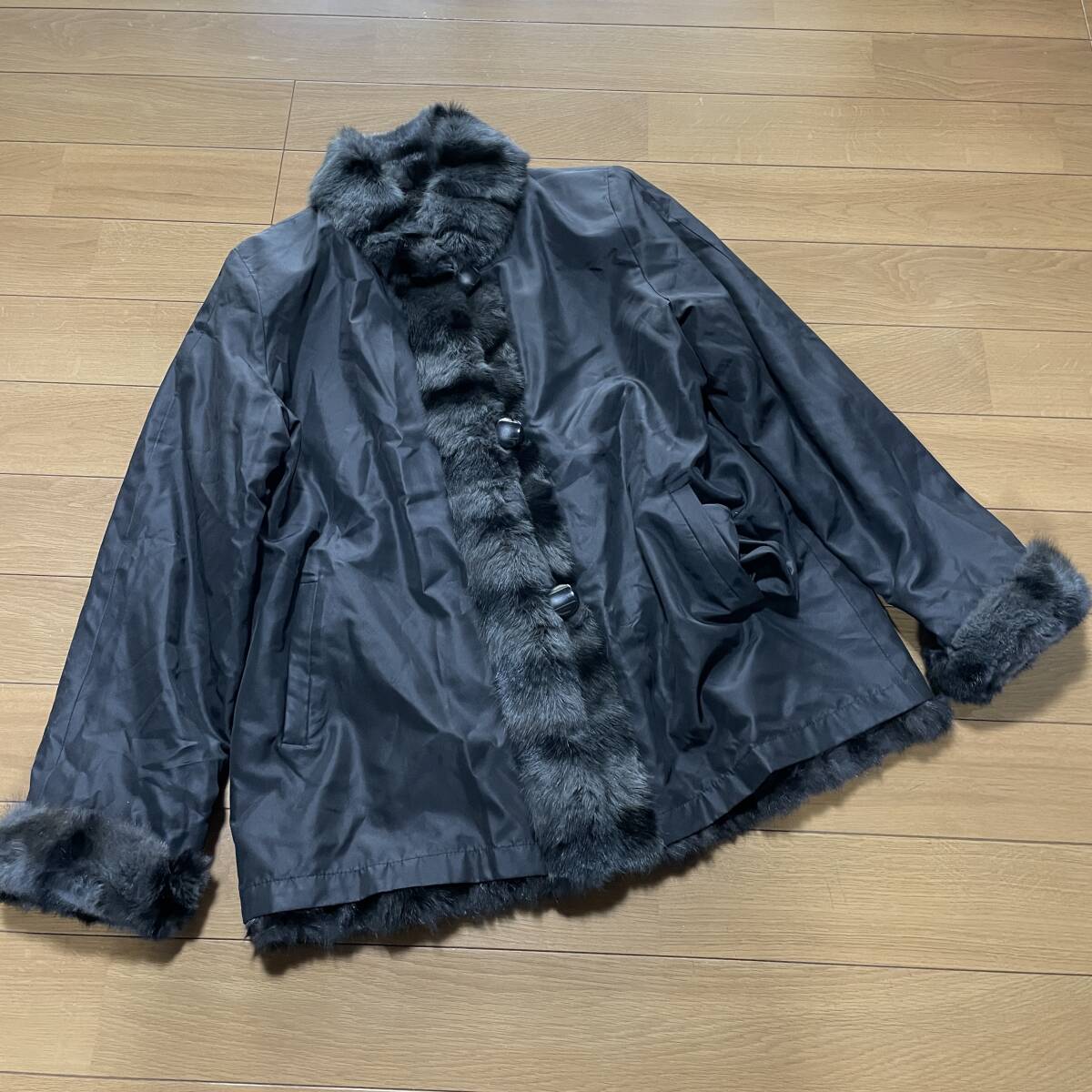 P-10 ●本毛皮/シルク100% リバーシブル ボタン コート●