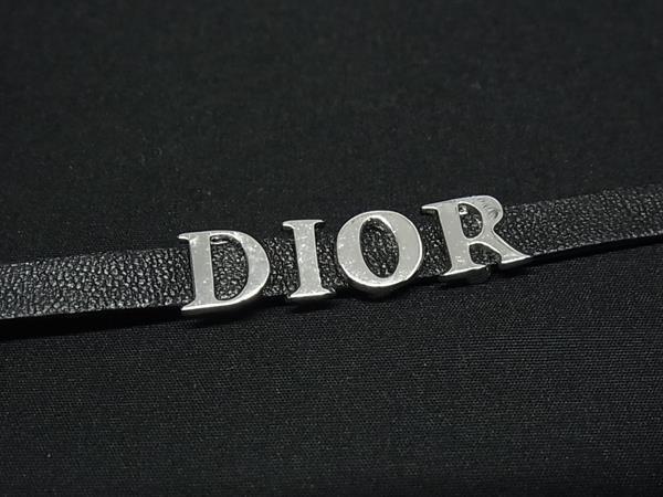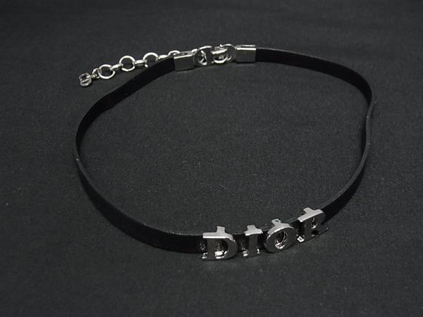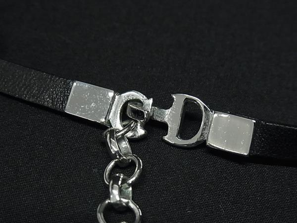 1円 ChristianDior クリスチャンディオール レザー チョーカー ネックレス アクセサリー レディース ブラック系×シルバー系 FU2408
