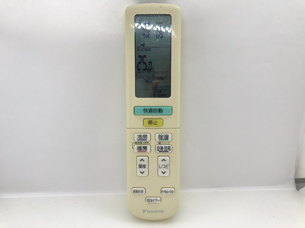 (エアコンリモコンの場合、正面からだとディスプレイ表示が薄い仕様のものもございます。不具合ではございません。)
