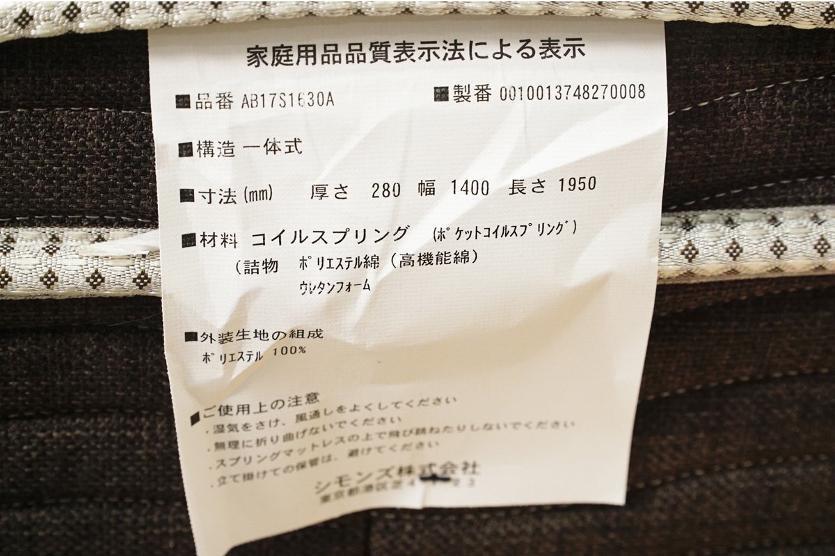 ◇Simmons(シモンズ )6.5エッセンシャルスマートMD ポケットコイルマットレス付きダブルサイズベッドです。 ◆詰め物に「ビューティレスト ブレスフォーム」を採用 多湿時には湿気を吸収、乾燥時には湿気を放出するため、睡眠時の最適な湿度環境を整えます。 シモンズ社カタログ商品の最高ランクのマットレスにも採用されている詰め物になります。 ◆「ルーズフィット タック&ジャンプキルティング」 張地にゆとりを持たせることによって、生地の張りを抑え、ソフトな寝心地を持たせています。 ◆「スマートデュアルコイルスプリング」 「6.5インチ・線径1.7mmコイル」と「スマートレスポンス」という2種類のコイルを使用。 横になった瞬間はふんわりとフィットし、さらに体重をかけると身体をしっかりと支えます。 2つのコイルを縦列に交互配列することにより、今までになかった感触を生み出します。 シモンズ社のカタログには掲載されていない島忠だけのコイル構造です。 ◆「帝人の素材」 中綿には抗菌・防臭性に優れたTEIJINの「フィルケア/ポリティ」を採用。 フィルケアは三つの孔が空いている中空構造で、へたりにくく、嵩高回復性にも優れています。 繊維をらせん状にした「スパイラル構造」による、心地よいボリューム感と弾性が特徴です。 ベッドフレームはシモンズの「シエラスリムシェルフ」。ヘッドボードにコンセントやUSBコネクター、照明がついていますので、お休みまでの時間をくつろいで過ごせるベッドです。 参考新品価格:323,000円(マットレス:210,000円+ベッドフレーム:113,000円) |
