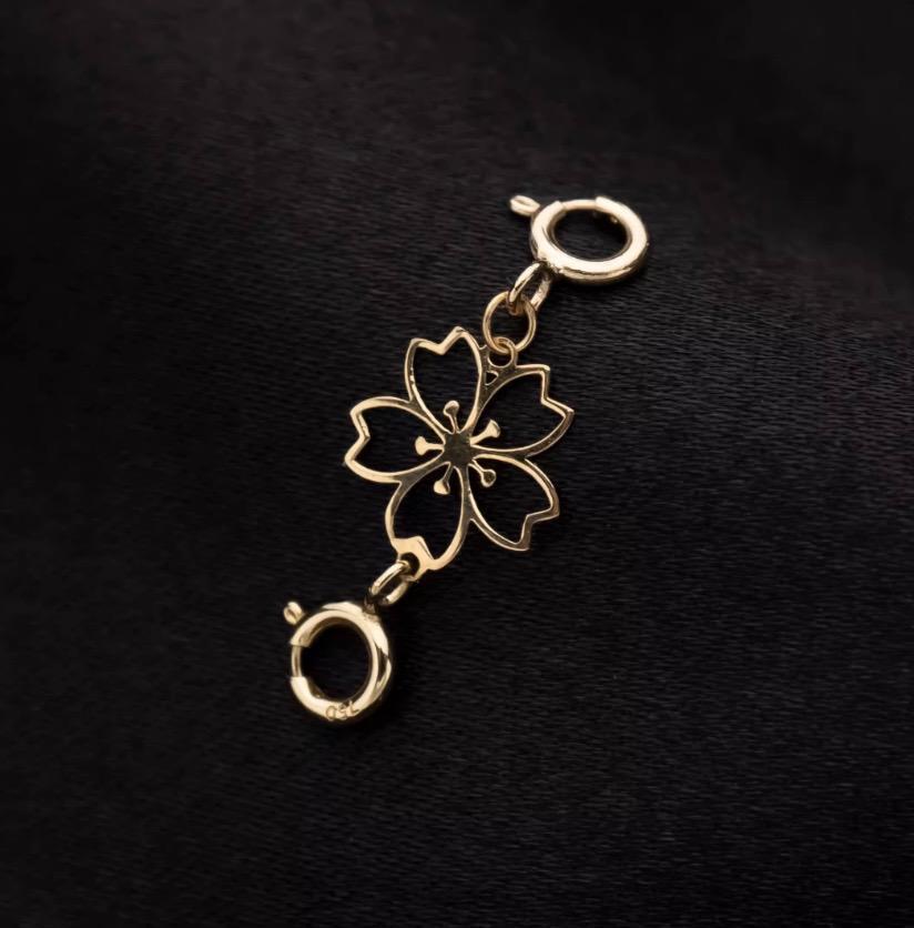 K18YG 引き輪 ヒキワ ひきわ 花 桜 梅 チェーンパーツ ネックレスパーツ 18金 18K チャーム 両開口 コマ 花モチーフ 延伸 延ばす
