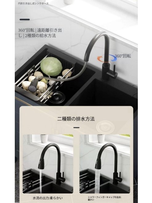 頑丈で耐久性のある構造: 高品質のステンレス製で、毎日の使用に耐えるシンクです。腐食、サビ、汚れに強く、長持ちします。頑丈な構造で安定感があり、性能に妥協することなく、重労働にも適しています。