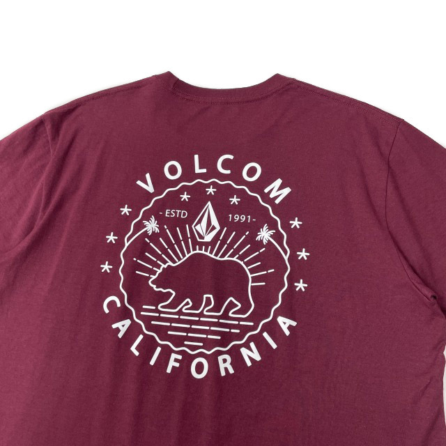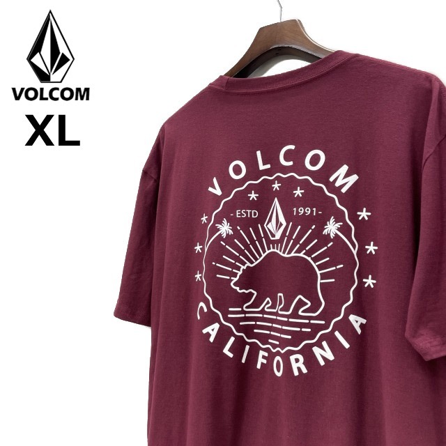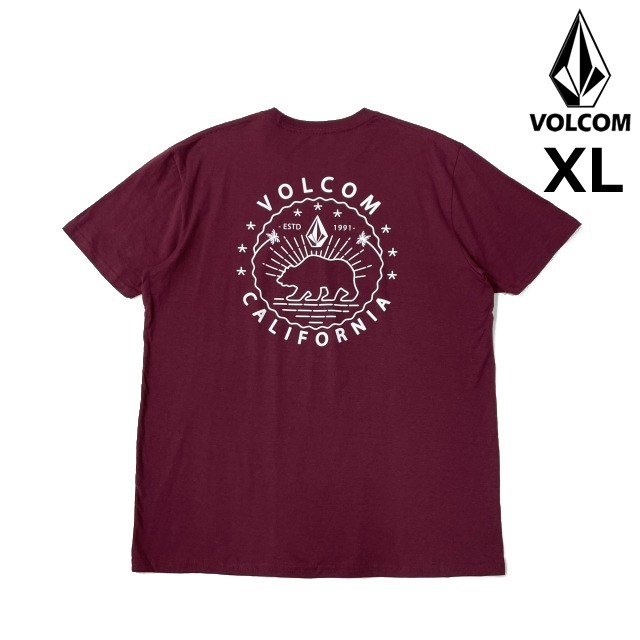 売切り【正規新品】VOLCOM ボルコム◆半袖 Tシャツ スケート サーフ ストーンロゴ バックプリント 男女兼用(XL)ボルドー 赤 250617-B
