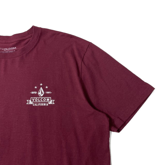 【USA購入 正規新品】VOLCOM ボルコム◆半袖 Tシャツ スケート サーフ ストーンロゴ バックプリント 男女兼用(XL)ボルドー 赤 250617