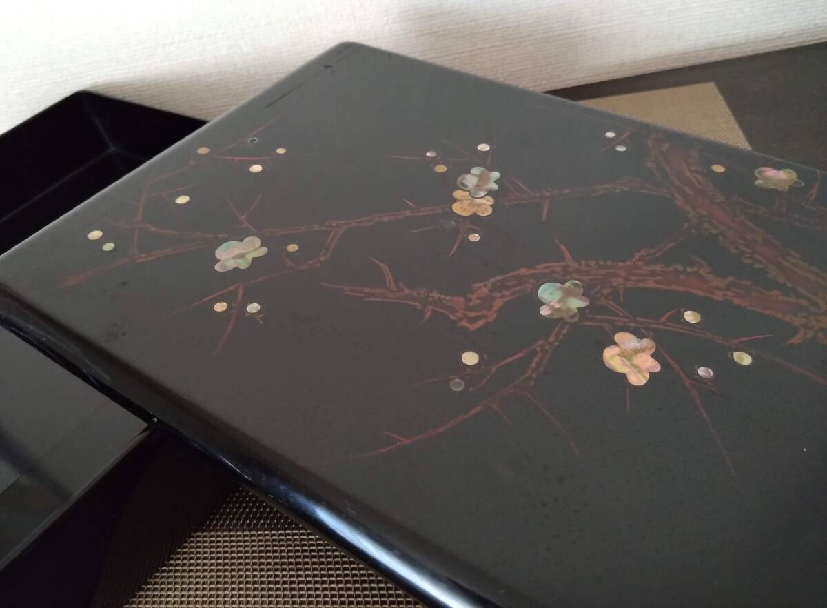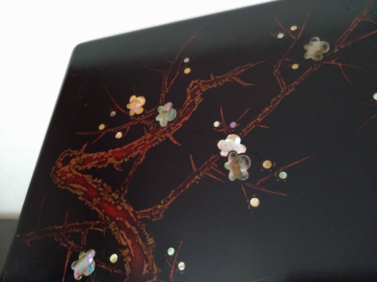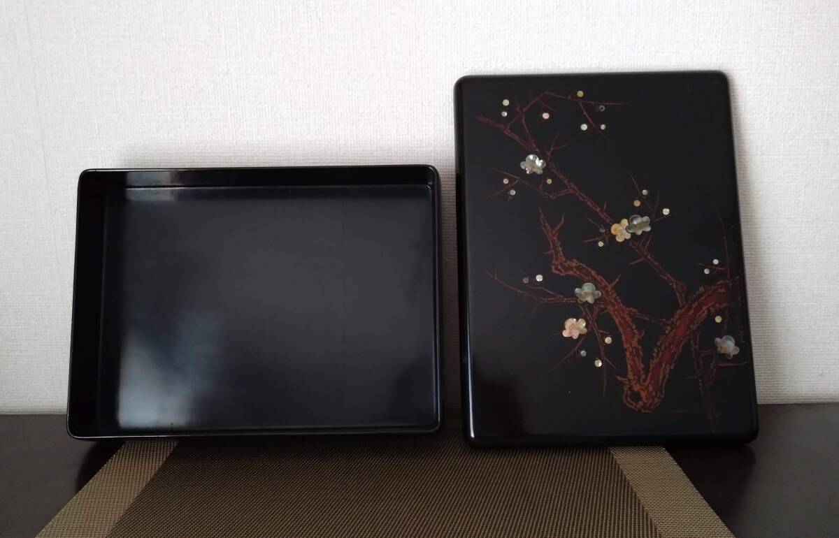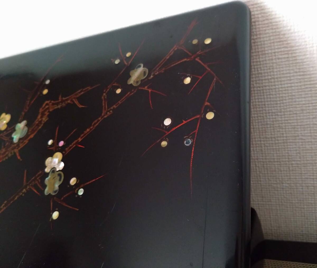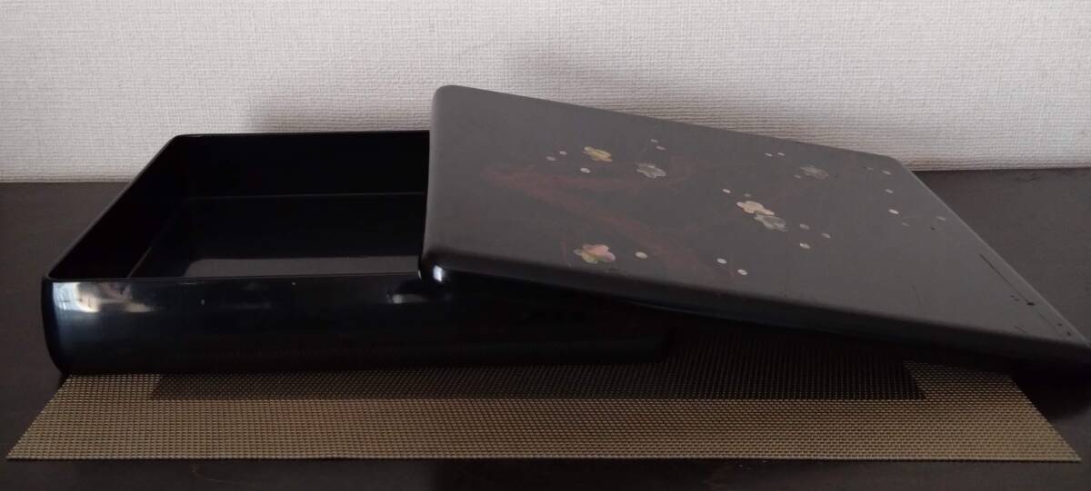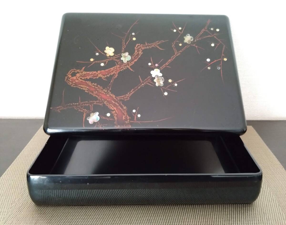 漆器 木箱入 小物入れ 木製 漆塗 蒔絵 螺鈿 梅文 ##