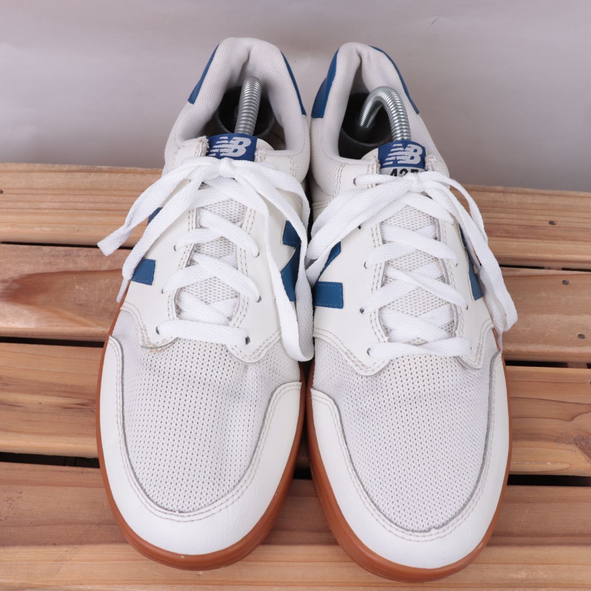 z2366【425】ニューバランス US9 27.0cm/白 ホワイト ダークブルー newbalance メンズ スニーカー 中古