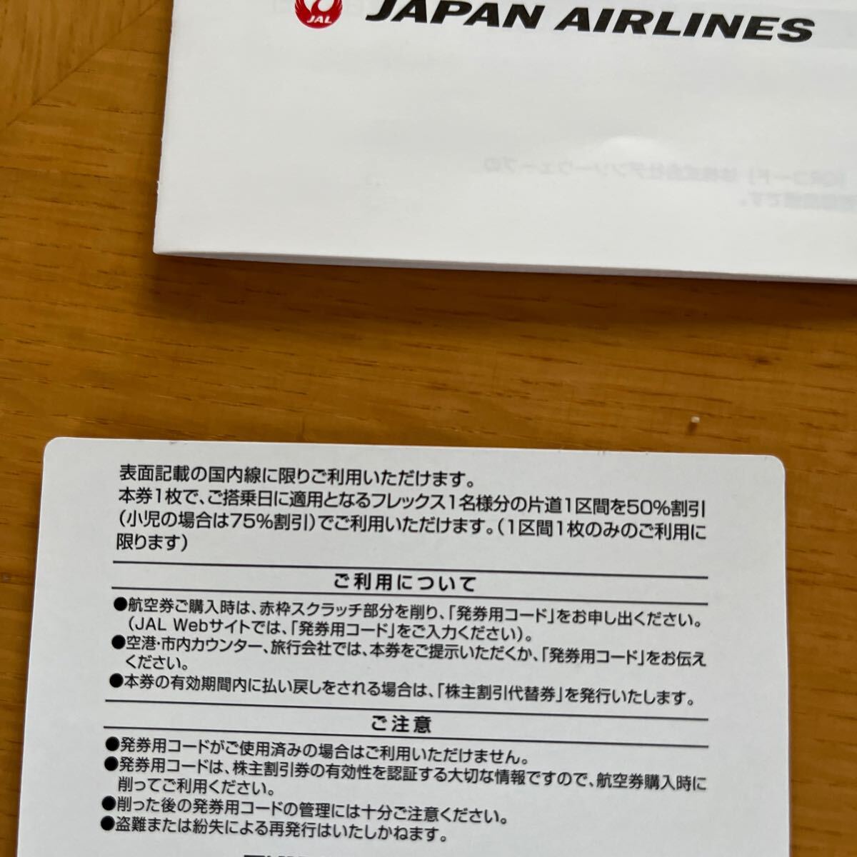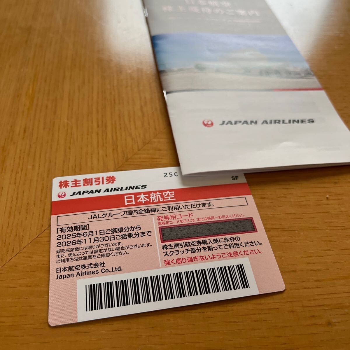 最新のJAL株主ご優待券です。