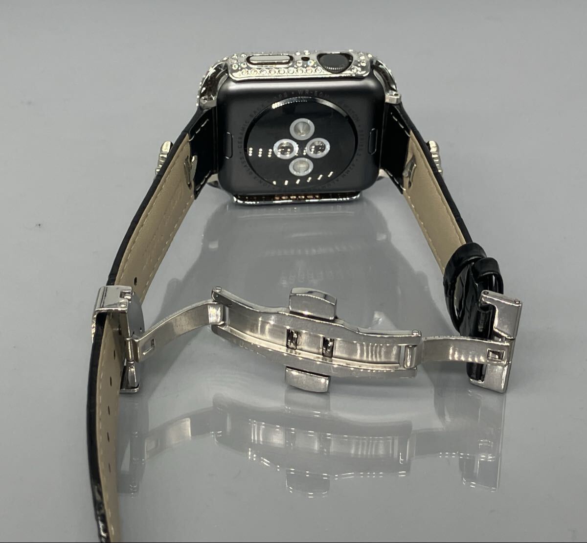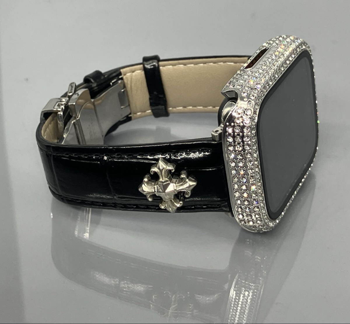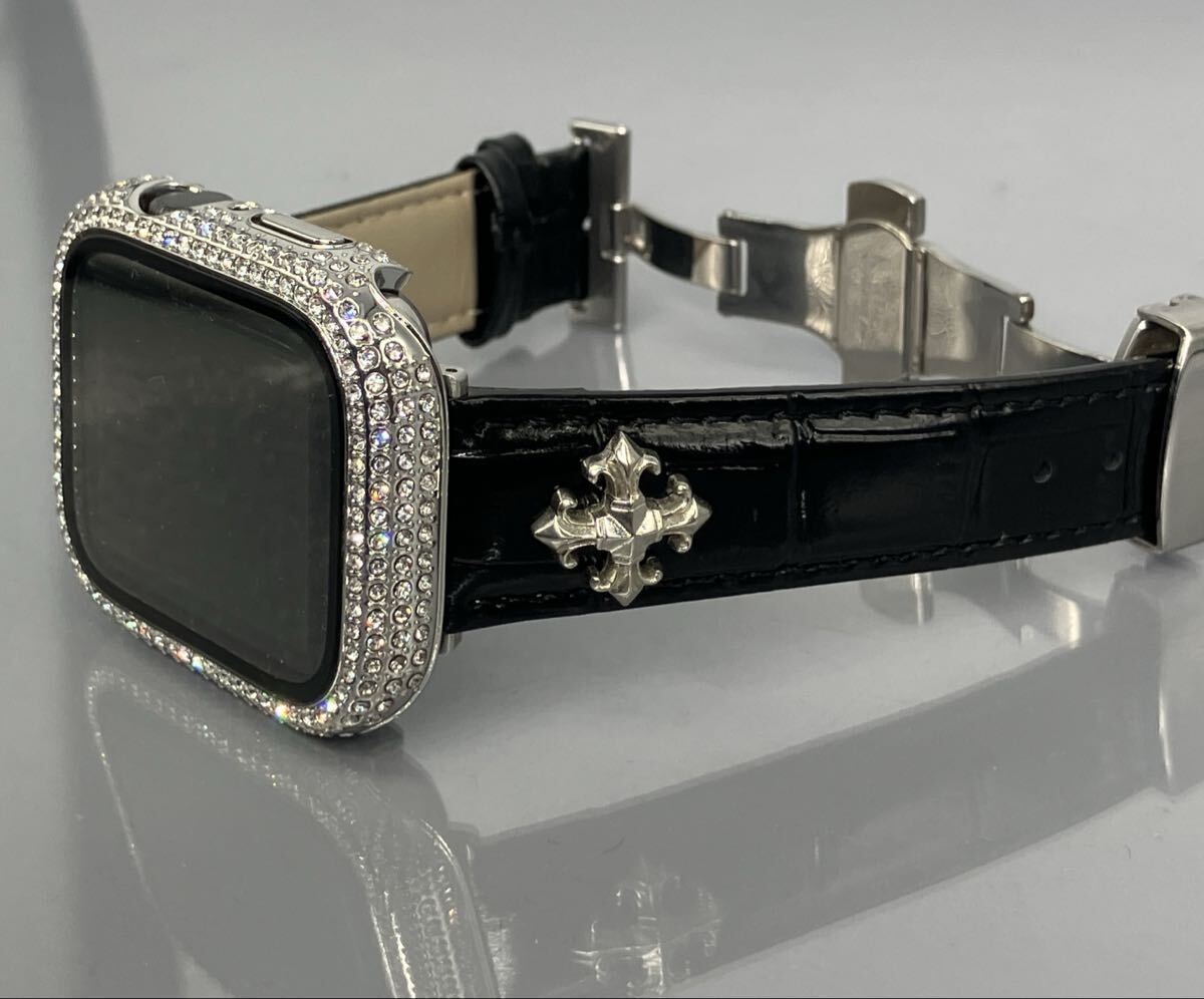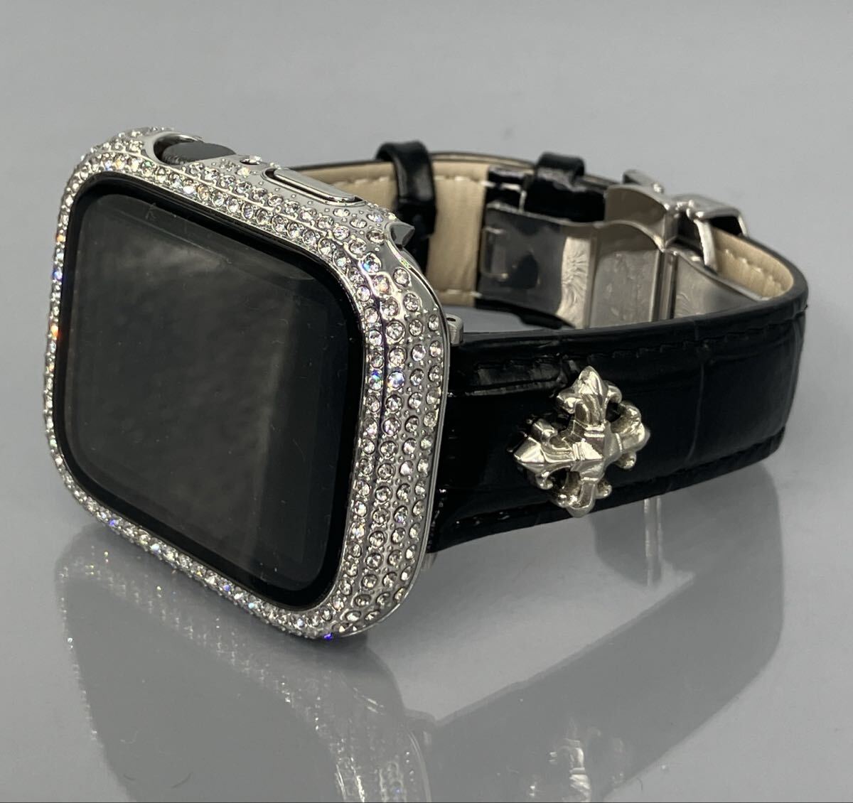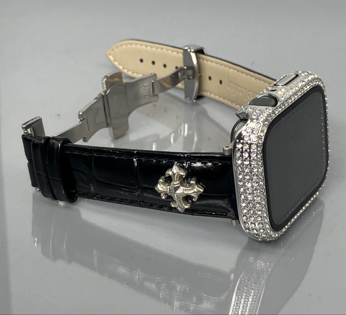 Apple Watch用 レザーバンド&glassパヴェ仕様カバーセット