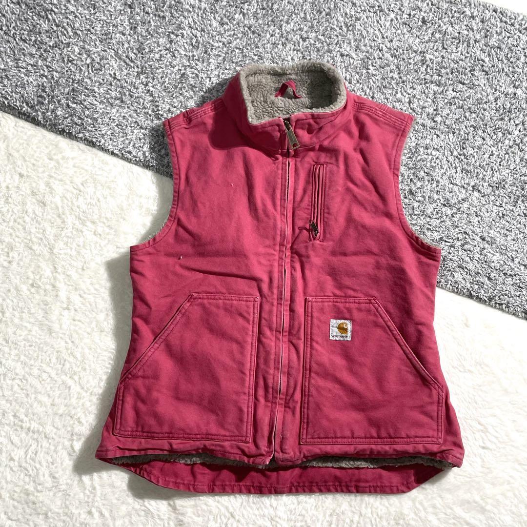 ワークジャケットの定番として有名なカーハートのダックベスト。古着ならではのダメージ感、色褪せの風合い感でよりかっこよく渋い一着となっております♪