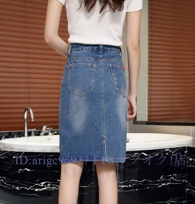 ★新品デニムスカートレディース スカート 膝丈 シンプル 無地 タイト 普段着 大きいサイズ S-4XLライトブルー