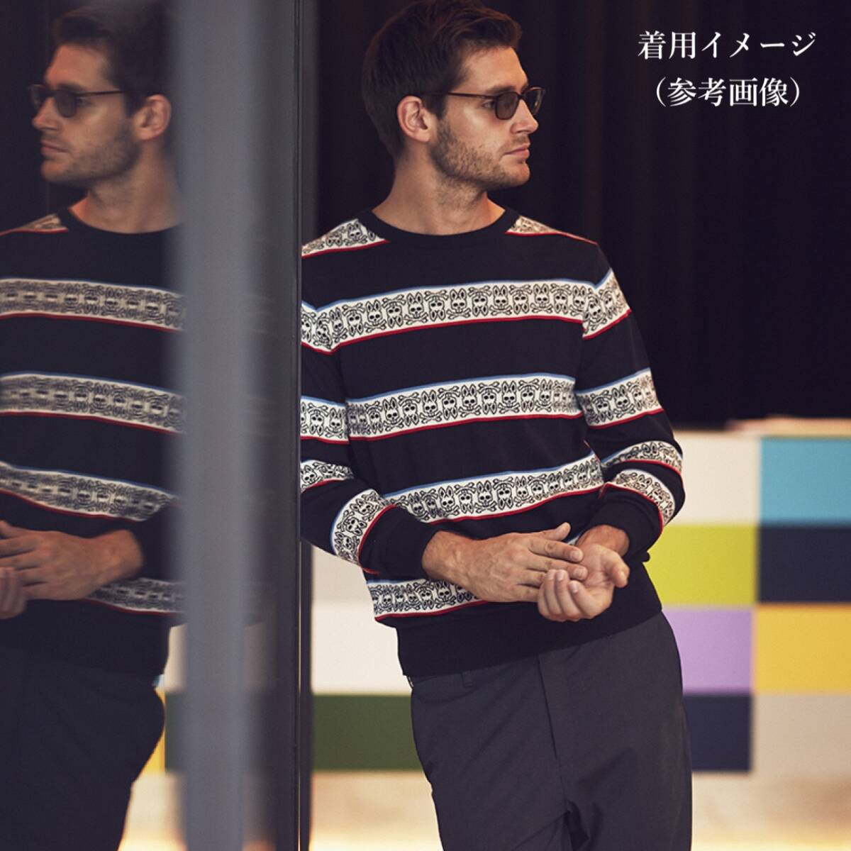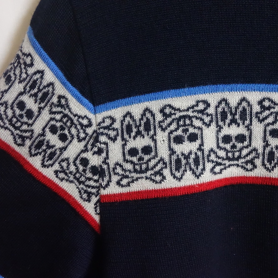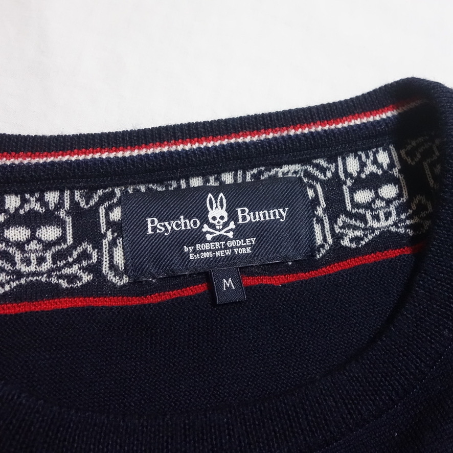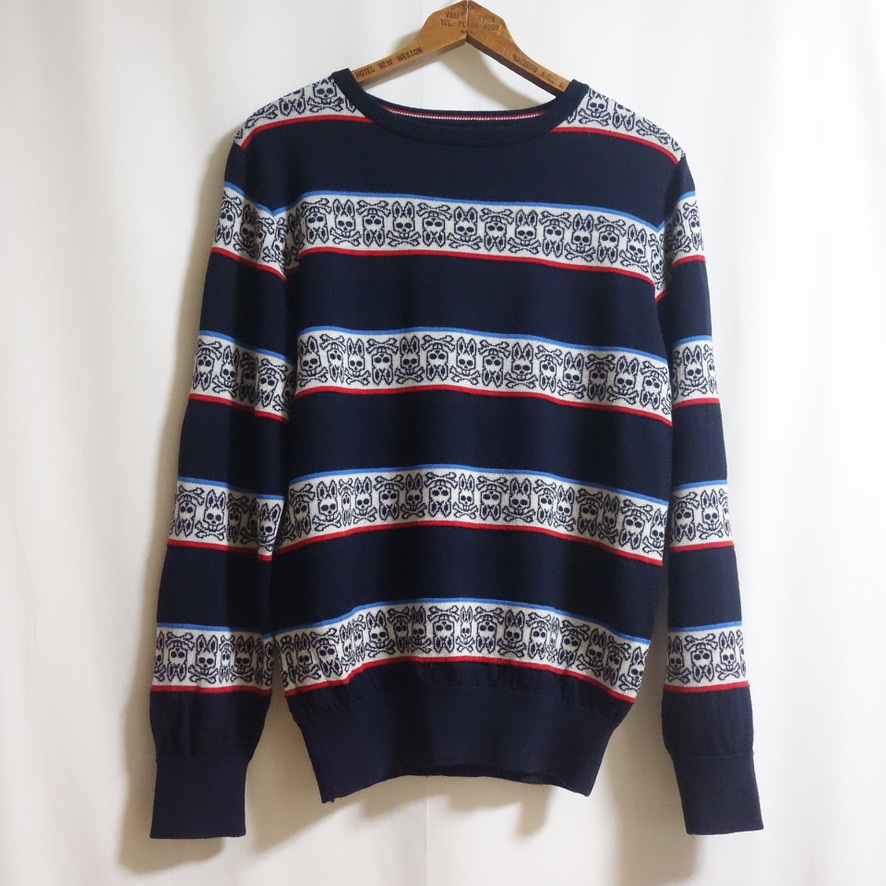 【2018-19AW Psycho Bunny サイコバニー ジャガードボーダー ニット M】薄手 セーター WOOL100%