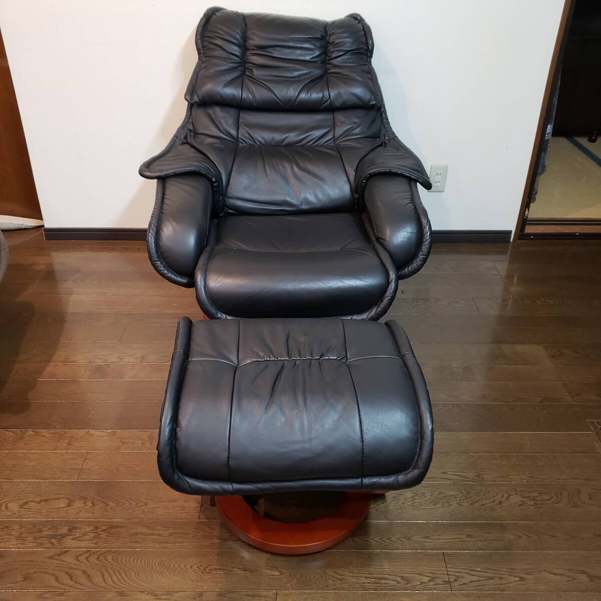 M-232 関家具 プリメーラ リクライナー オットマン付きリクライニングチェア ブラック 材質/合成皮革 奥行き86cm x 幅83cm x 高さ85cm