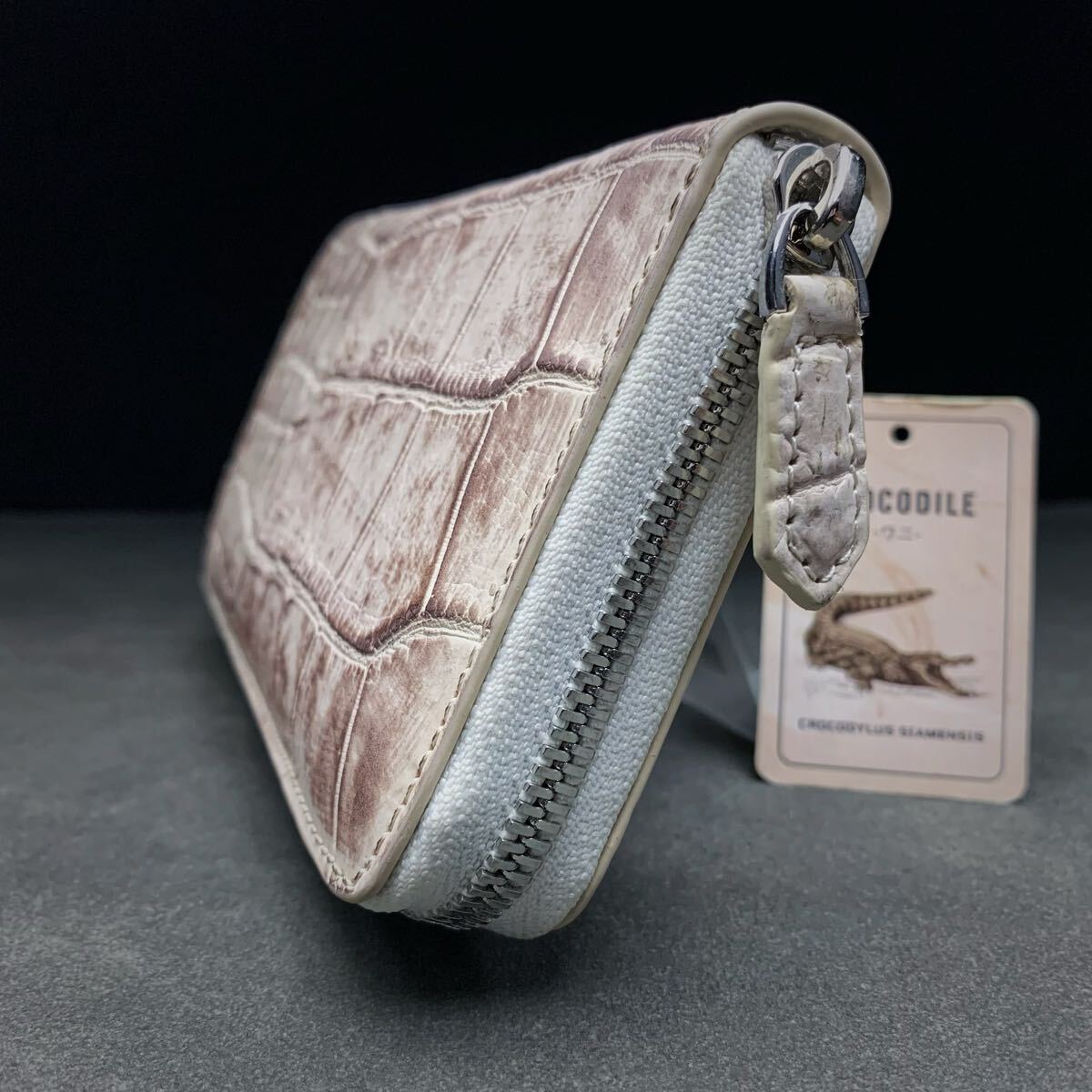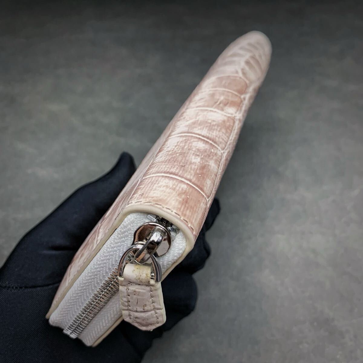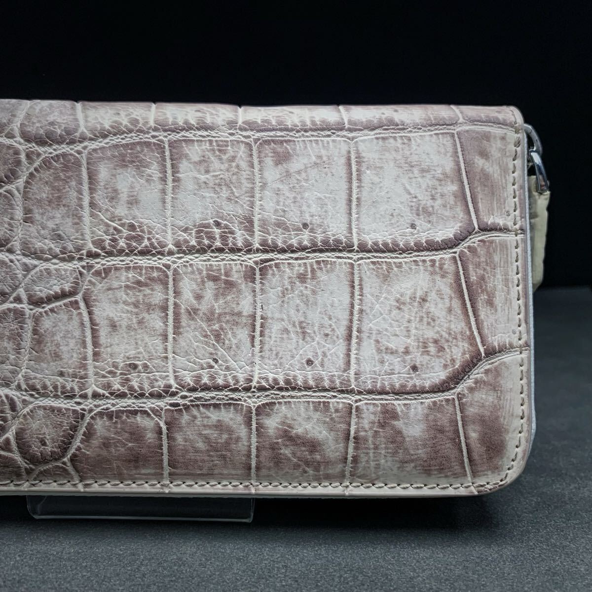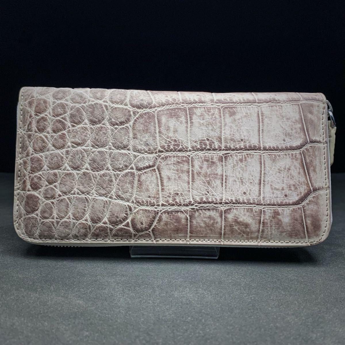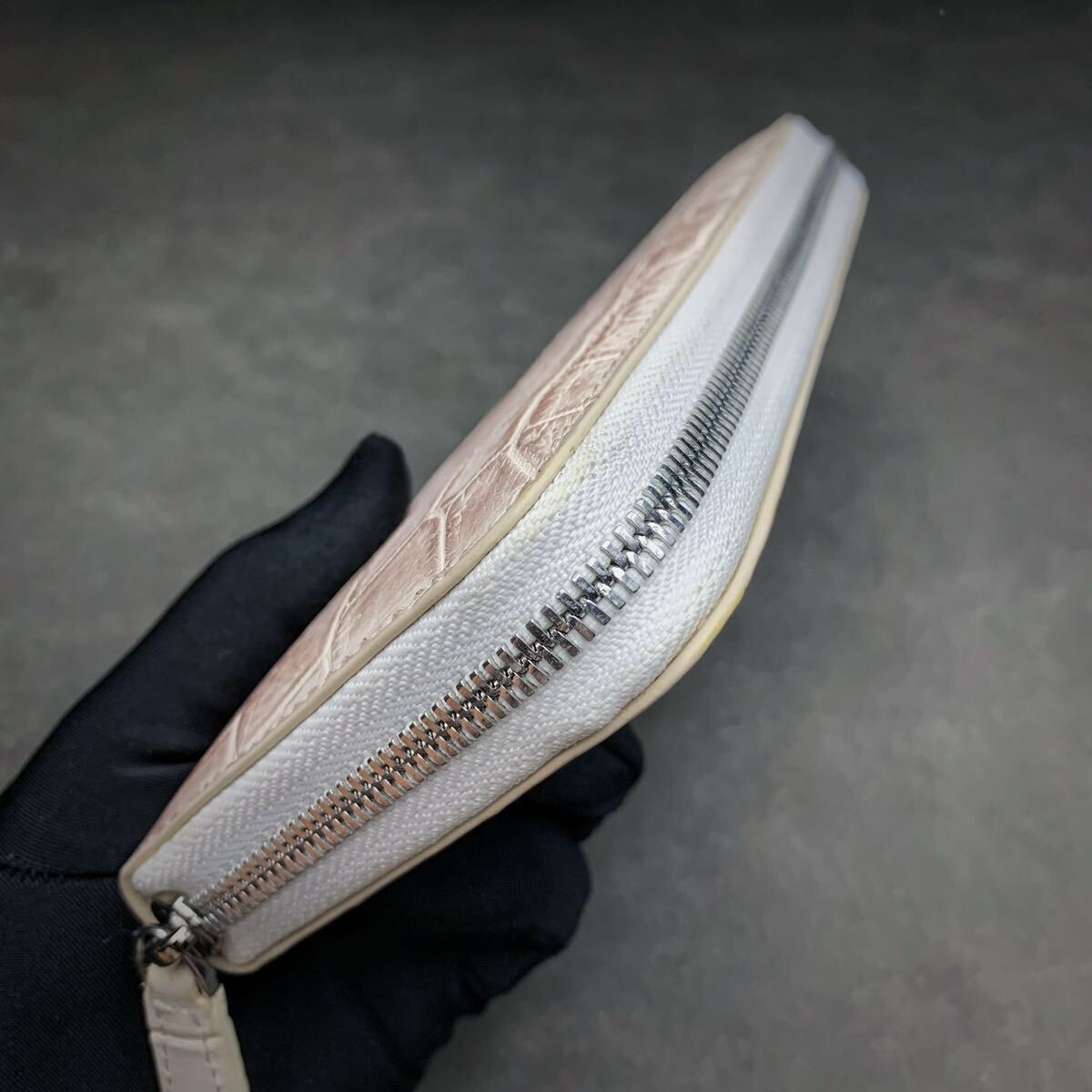 クロコダイルと呼ばれている品種のワニ革は人気が高く、独特の模様と凹凸が魅力で、高級ブランド品を中心にクロコダイルが多く使われています。今回はワニ革の代表格である<シャムクロコダイル>の背革部のラウンドファスナー財布を出品します。