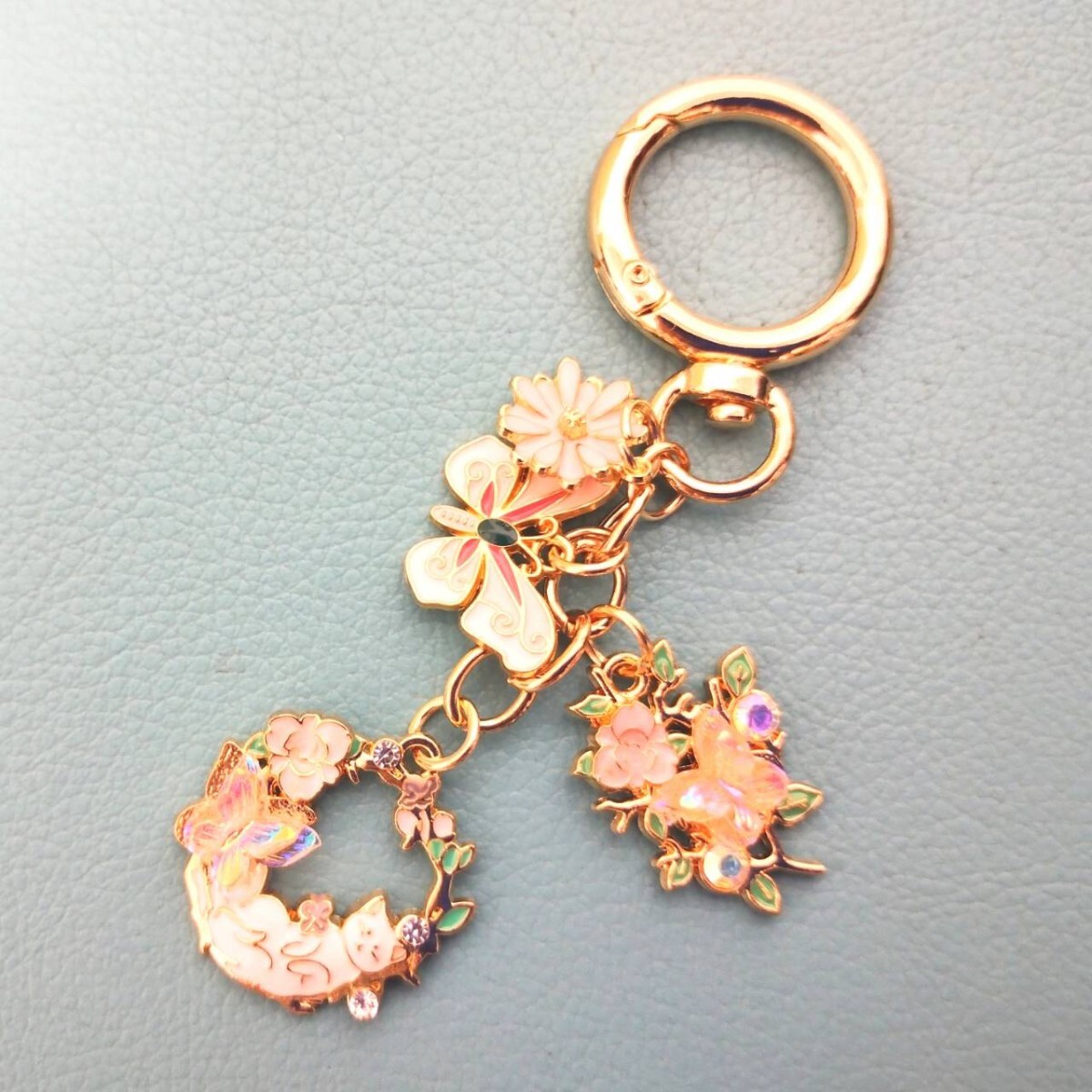 キーリング キーチェーン 可愛い バッグ チャーム カバン アクセサリー ペンダント バタフライ アクセント 財布 車のキー 装飾 女性 桜 蝶 猫 ドレス 小物 飾り ギフト かわいい 誕生日 プレゼント