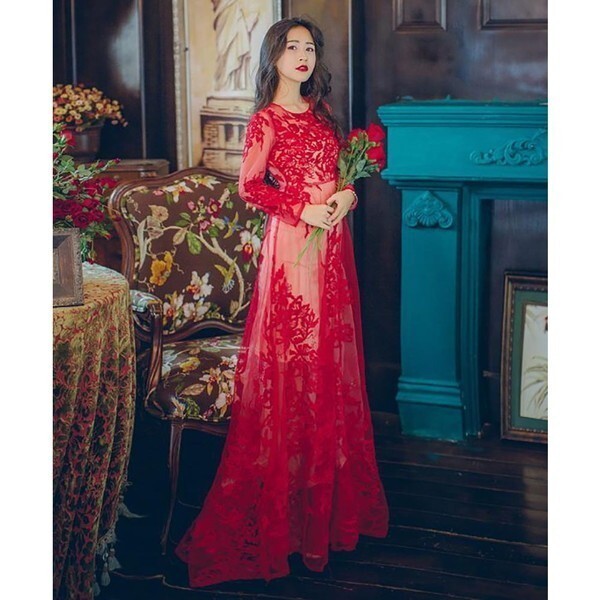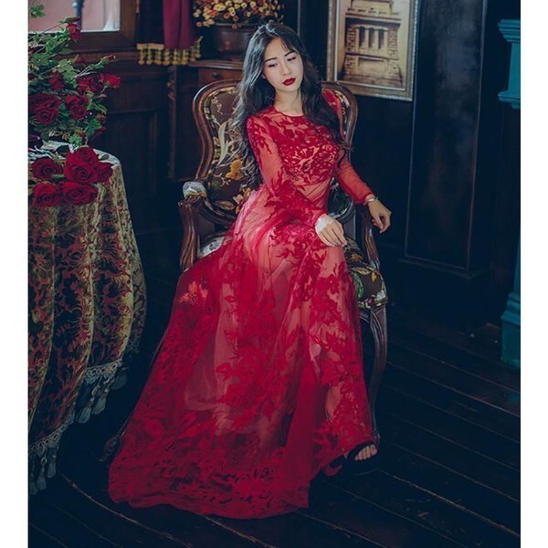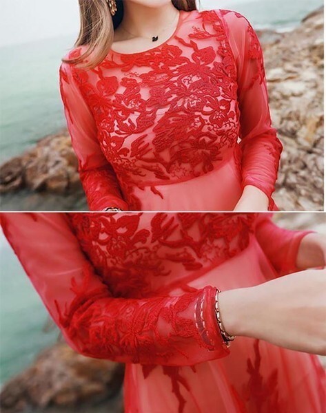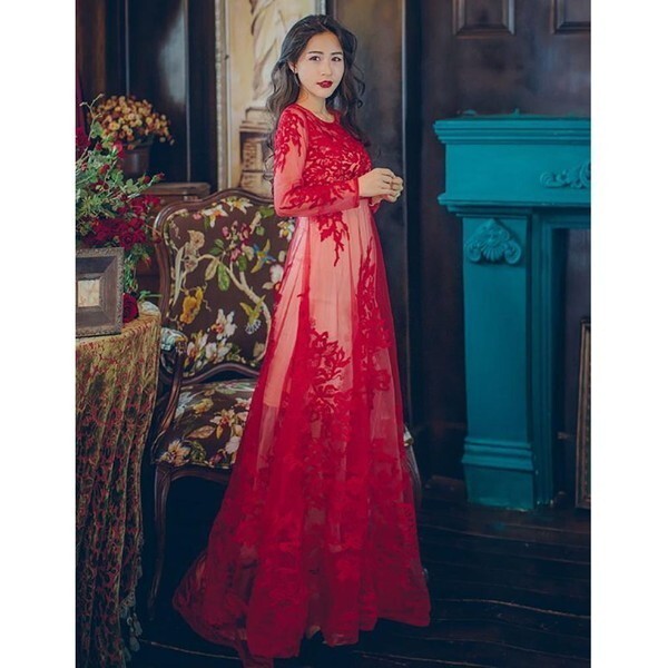 ドレス ロング丈 レース ロングスリーブ 女性 結婚式 ファスナー 二次会 マキシ丈 派手 ハイウエスト Aラインワンピース 花嫁 赤 美尻 美脚 レッドドレス演奏会や発表会用の衣装にオススメ。ステージ上のあなたを華やかに彩ってくれます。 結婚式や披露宴、二次会、パーティーでのドレスアップ、旅行先でのリゾートウェアにもオススメです。