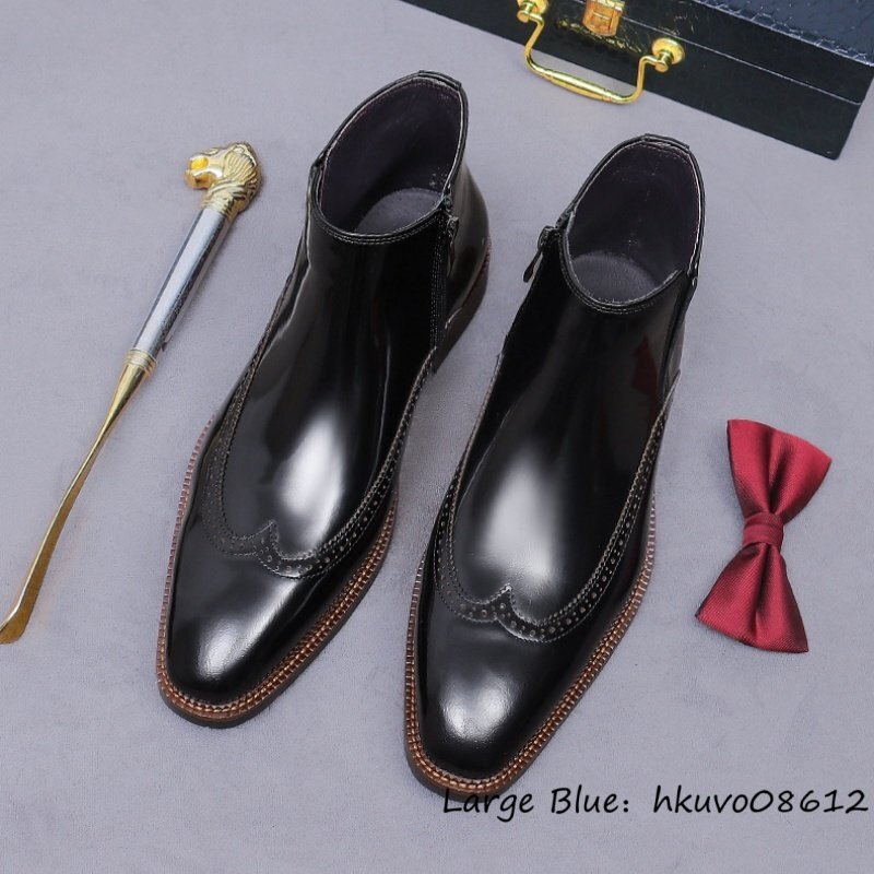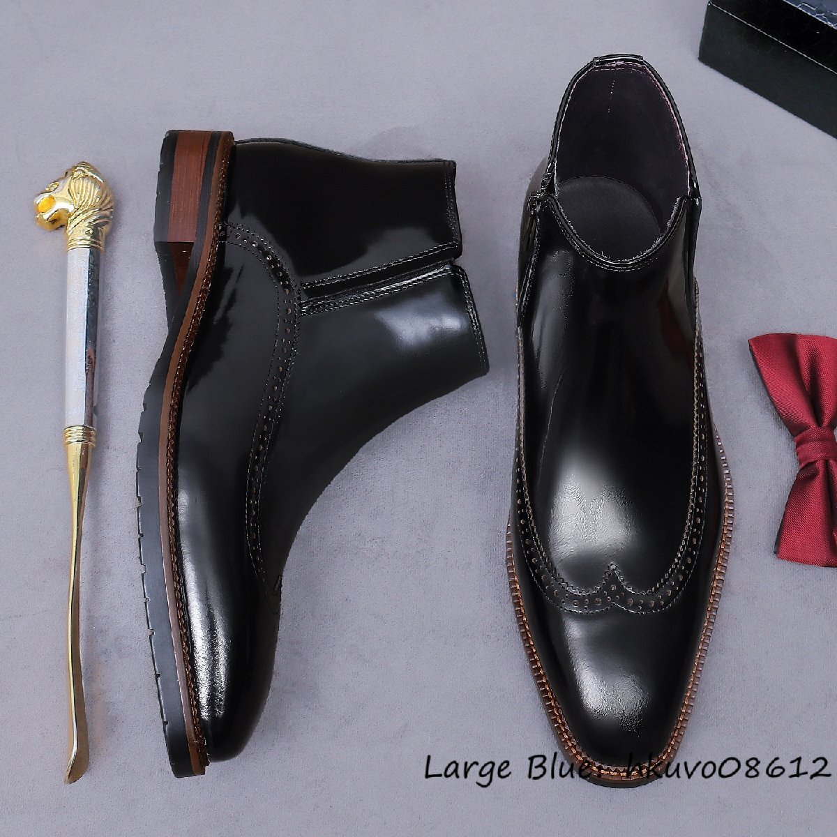 13万*マーティンブーツ メンズ 超希少 牛革レザーブーツ 職人手作り 皮靴 サイドジップ ビジネス 本革革靴 ショートブーツ ブラック 24.5cm