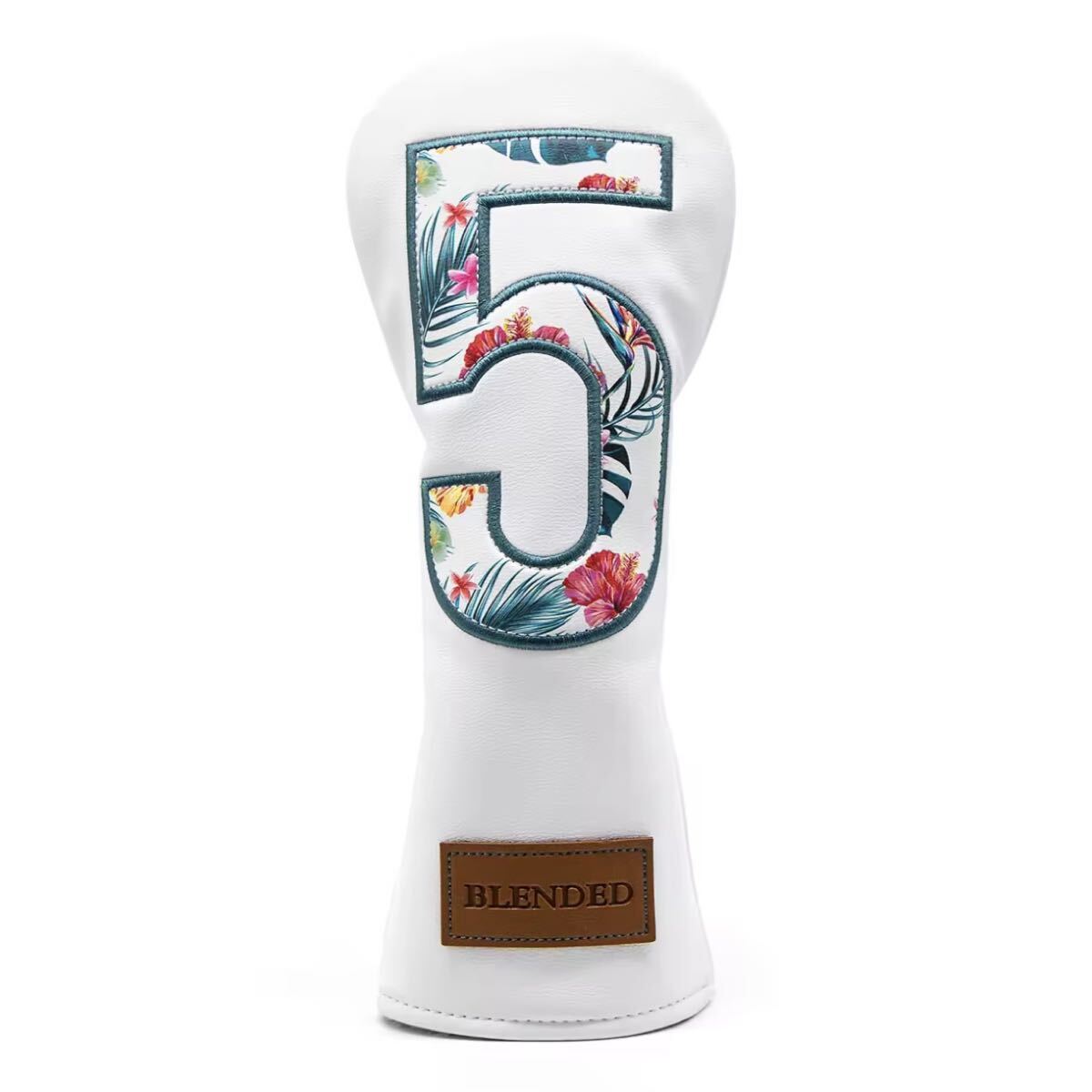 白を基調に鮮やかな花や葉をあしらったボタニカル柄のフェアウェイウッド用ヘッドカバー(単品)です。