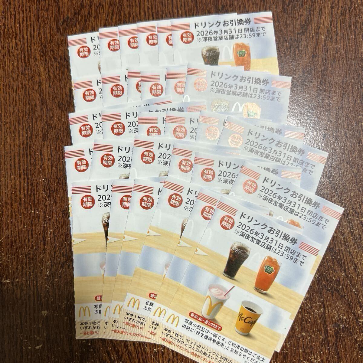 【匿名配送・送料無料】マクドナルド 株主優待 ドリンクお引換券30枚セットです。