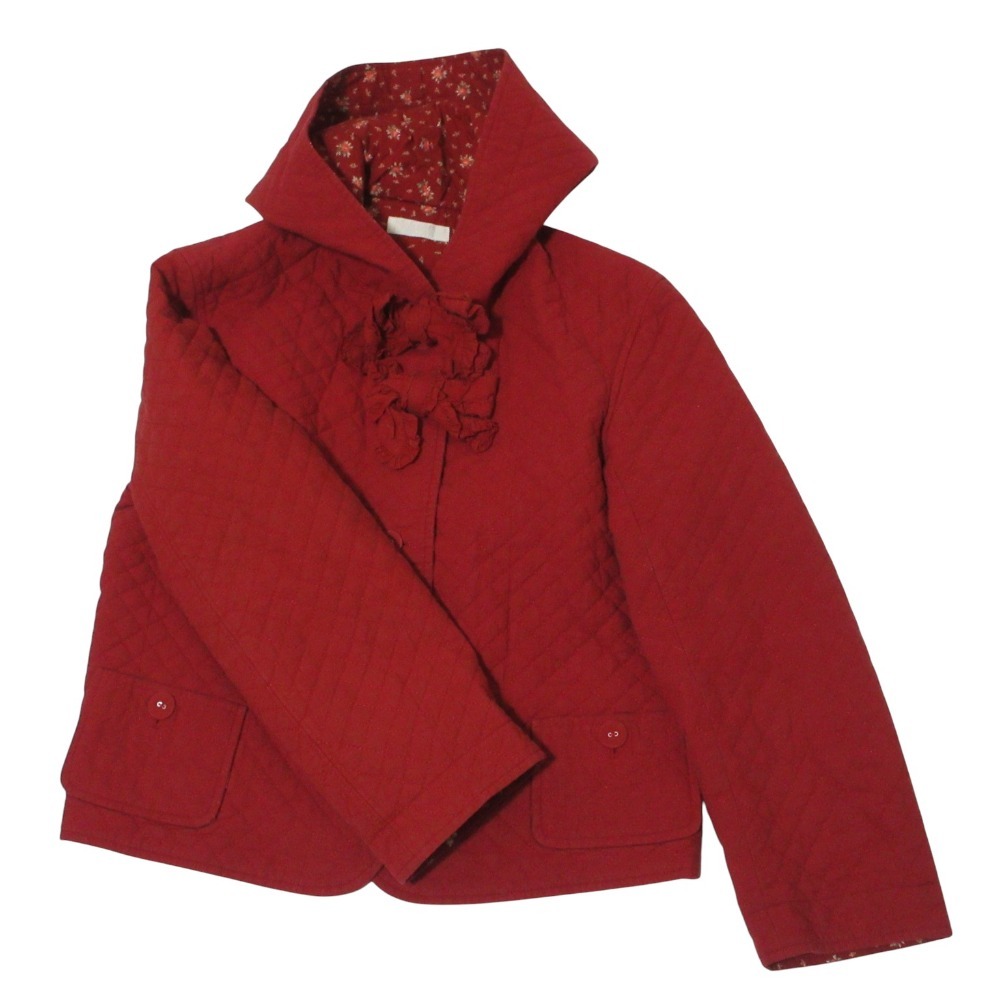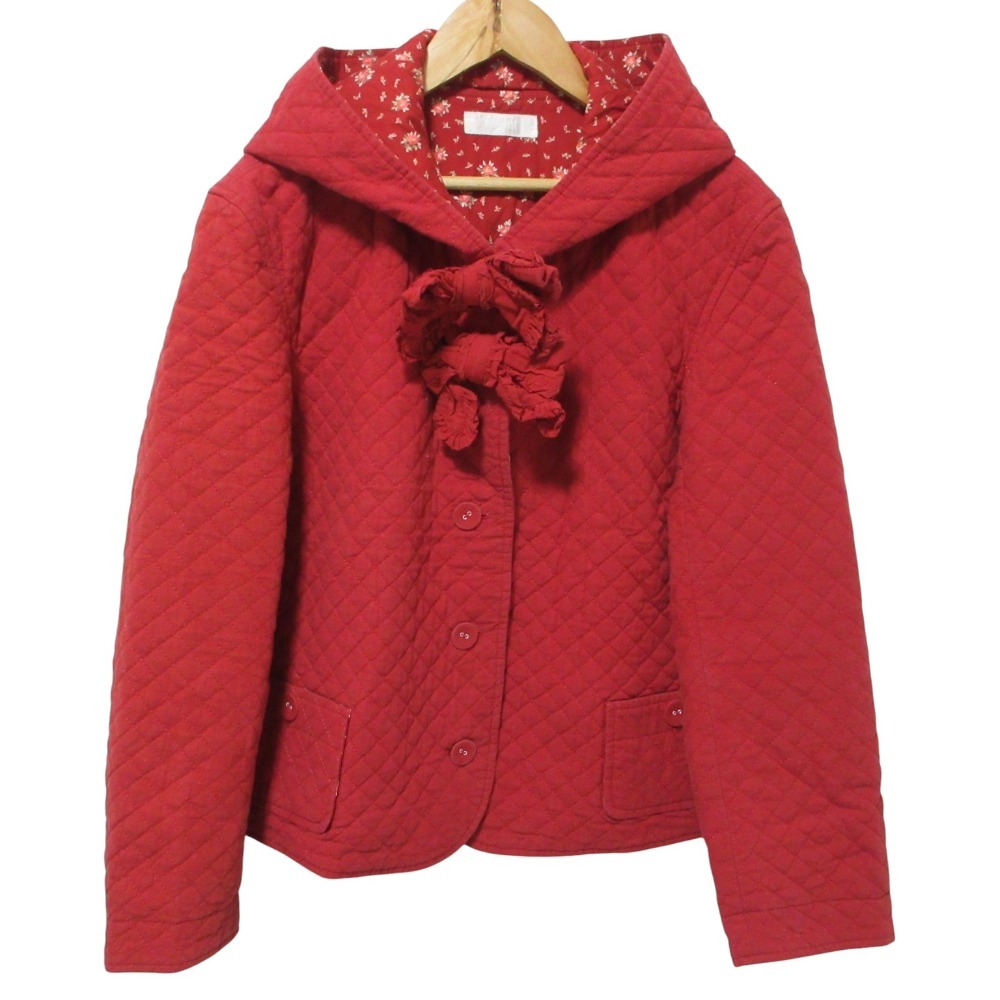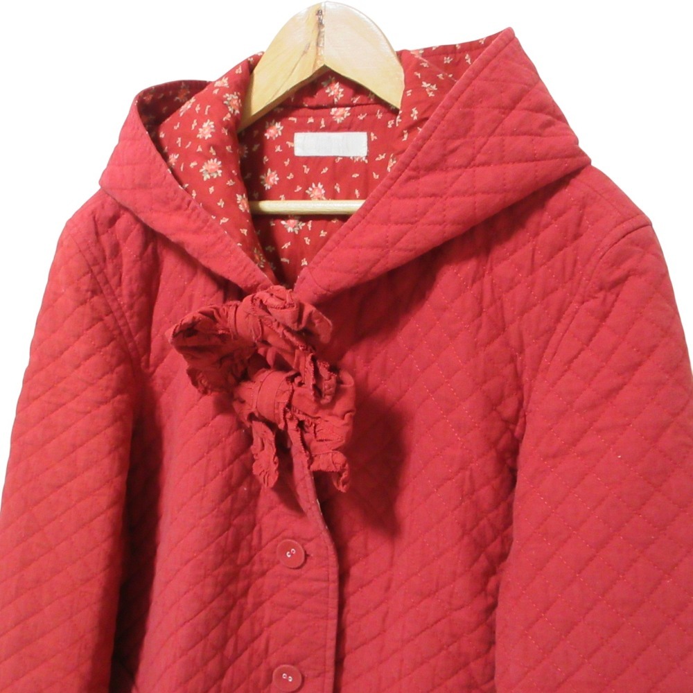 良品 PINK HOUSE ピンクハウス フリルリボン フーディー キルティング ジャケット レッド