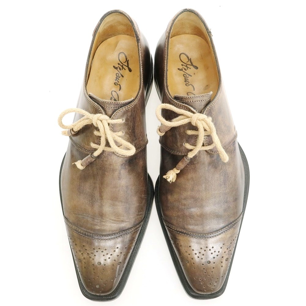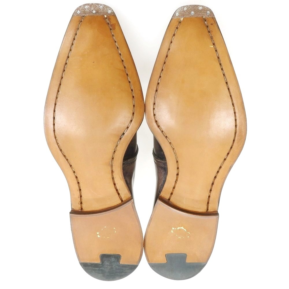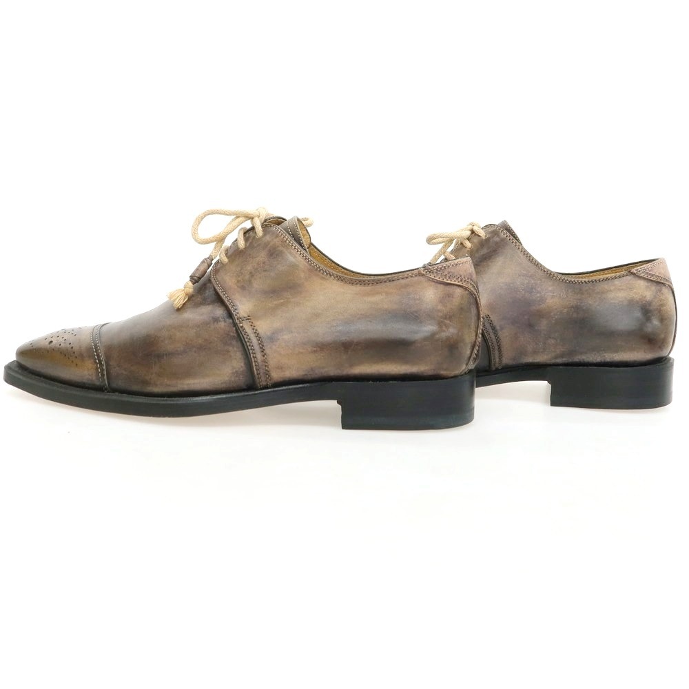 きめ細かなカーフ素材を用いた変形ストレートチップ。ムラ感のあるブラウン×ブラックカラーに、シャープなスクエアトゥがイタリア的な華やかさを演出した一足です。