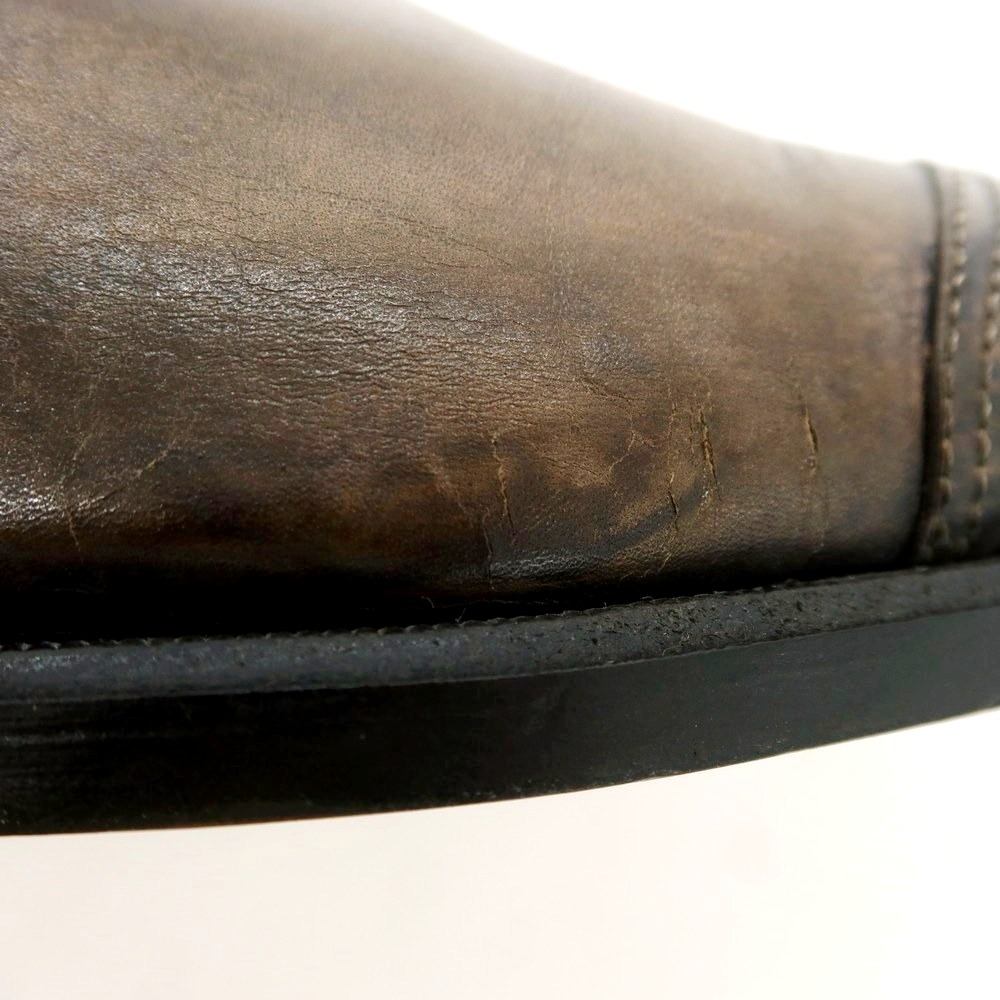 オールソール済、右足外側にクラックなど、全体的な使用感がございます。