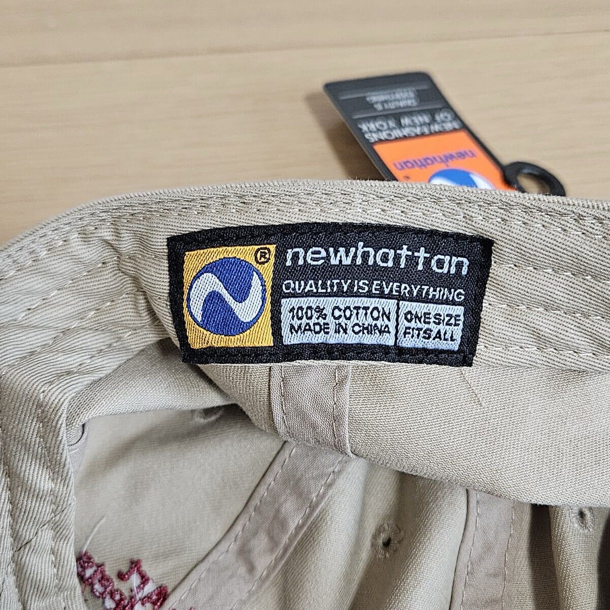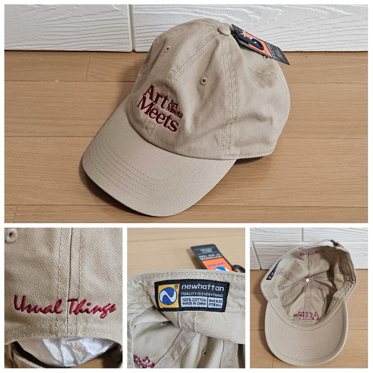 未使用品☆newhattan☆ニューハッタン☆Art Meets☆帽子☆キャップ☆野球帽☆刺繍☆J1404☆カーキ☆サイズONE SIZE