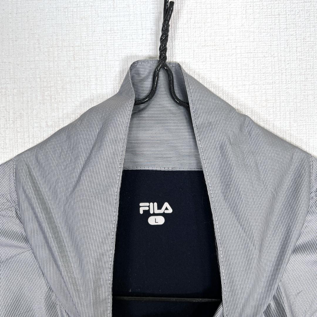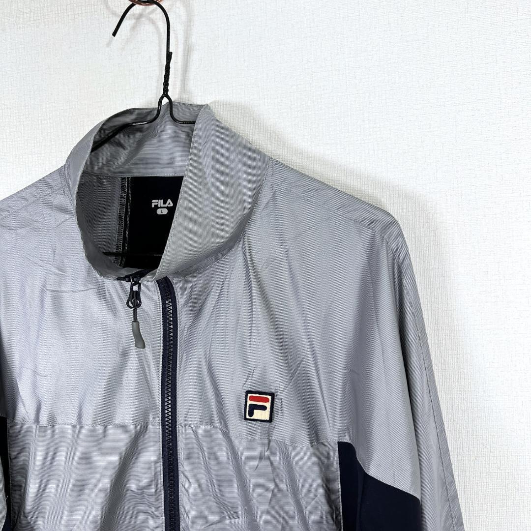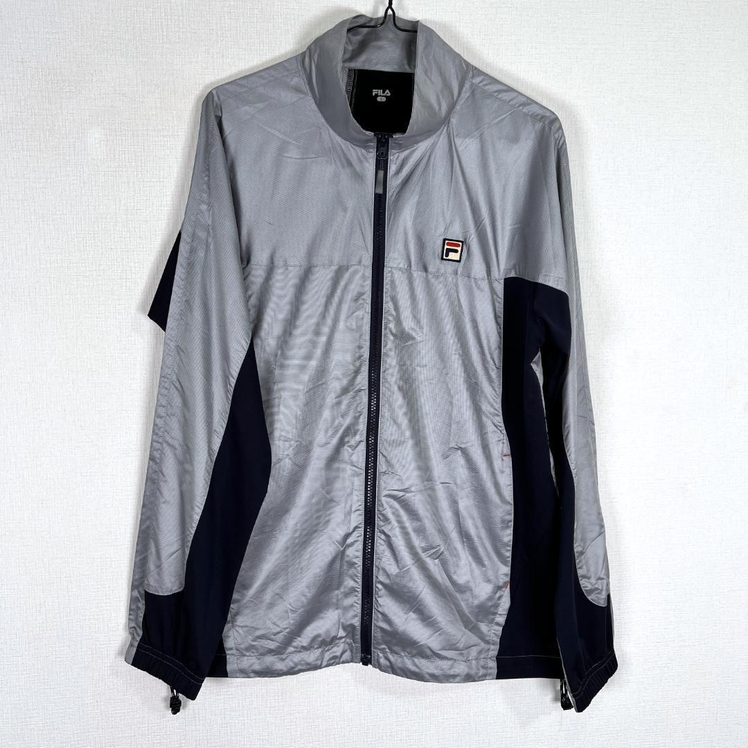 【FILA】フィラ グレー×ネイビー系 ジップアップ ジャケット ジャンパー ウィンドブレーカー ブルゾン アウター メンズ Lサイズ【a033】