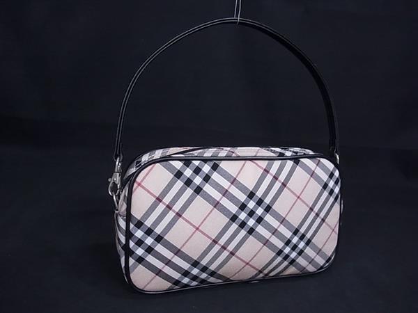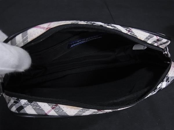 1円 ■美品■ BURBERRY バーバリー ナイロン×レザー チェック柄 ワンハンドル ハンドバッグ レディース アイボリー系×ブラック系 FV0270