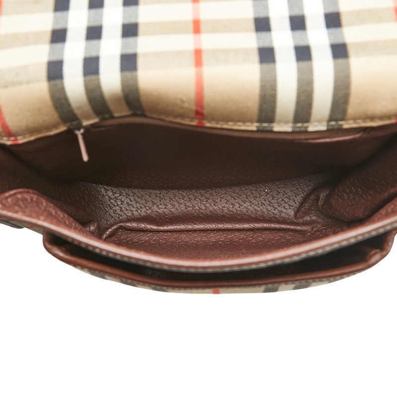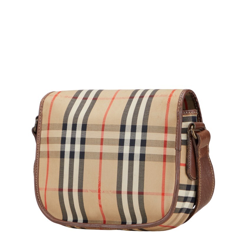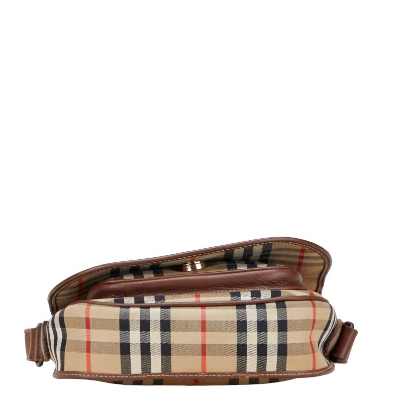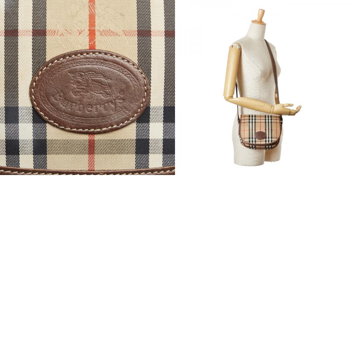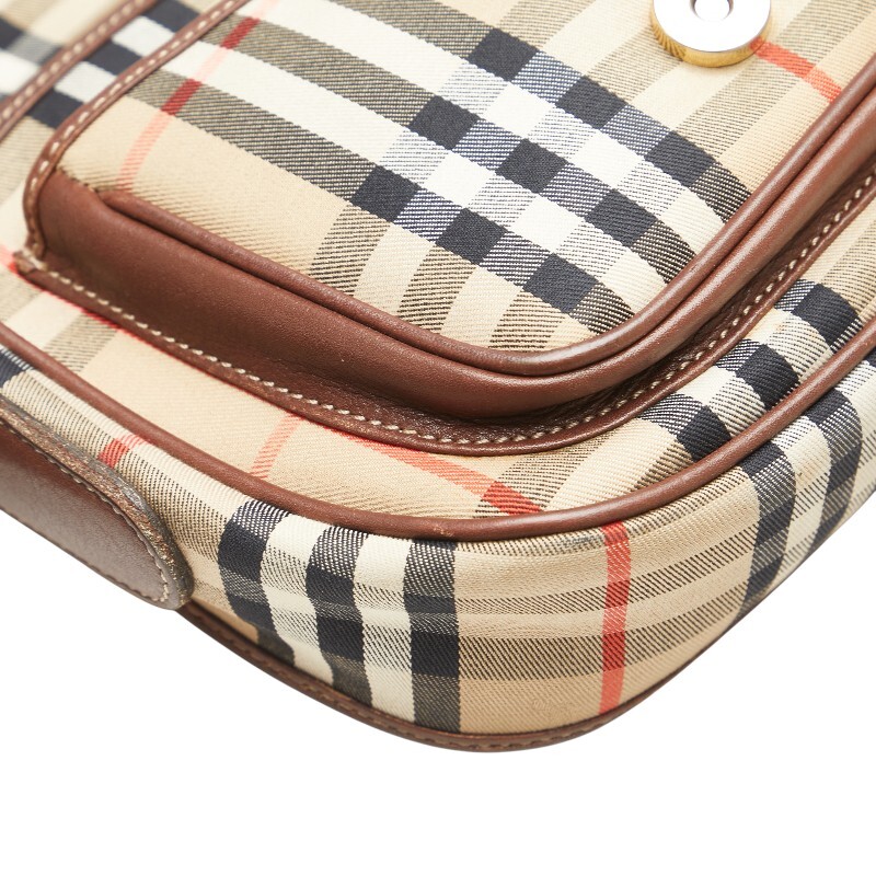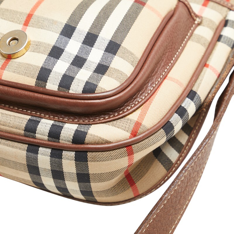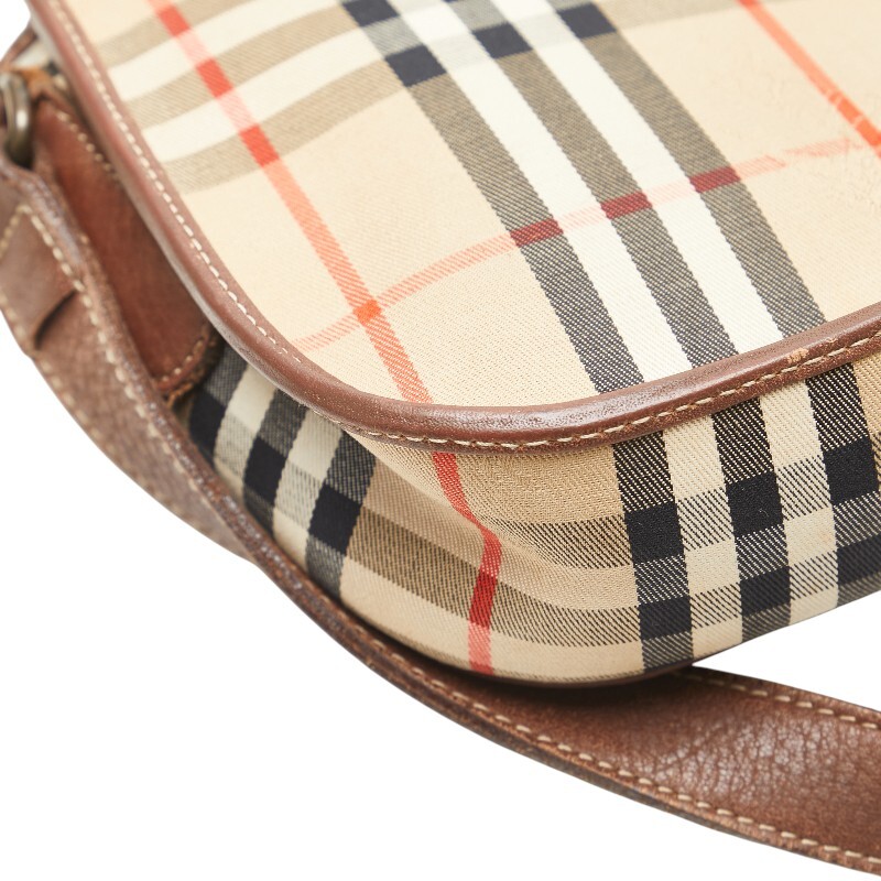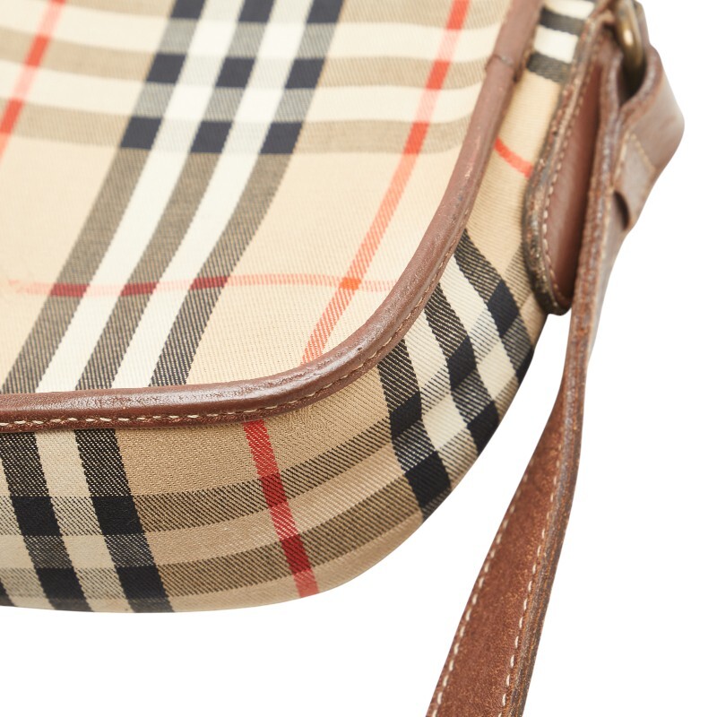 バーバリー ノバチェック 斜め掛け ショルダーバッグ ベージュ ブラウン キャンバス レザー レディース BURBERRY 【中古】