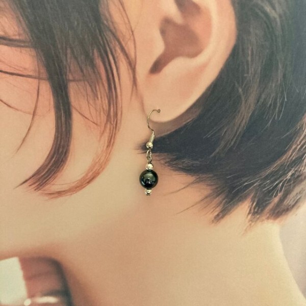 こちらは、8mm玉のヘマタイトを使用した一粒フックピアスです。シンプルなデザインはシーン問わず、どんなコーディネートにも合わせ易く使い勝手がいいアイテムです。今回は一粒ピアスの要望が多かった為制作しました。気になる方は是非この機会にどうぞ。